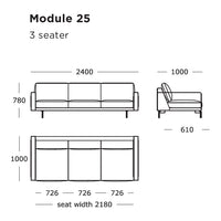 Module 25 (3 Seater, 3 Seats): 94.5" W x 39.4" D x 30.7" H | 15.7" SH
