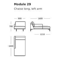 Module 29 (Chaise Long, Left Arm): 35.4" W x 63" D x 30.7" H | 15.7" SH