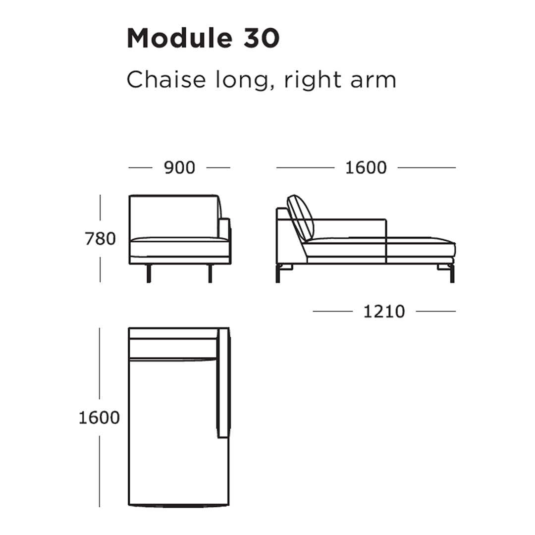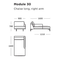Module 30 (Chaise Long, Right Arm): 35.4" W x 63" D x 30.7" H | 15.7" SH