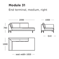 Module 31 (End Terminal, Medium, Right): 82.3" W x 39.4" D x 30.7" H | 15.7" SH