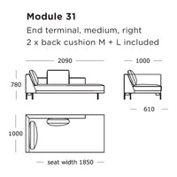 Module 30 (Chaise Long, Right Arm): 35.4" W x 63" D x 30.7" H | 15.7" SH
