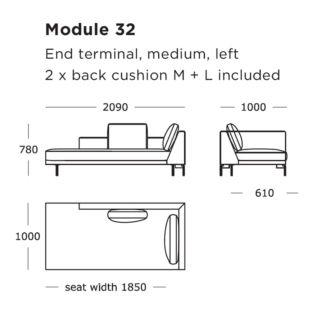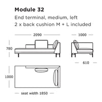 Module 32 (End Terminal, Medium, Left): 82.3" W x 39.4" D x 30.7" H | 15.7" SH