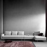 The Edge V2 Sofa takes its origin point in the idea of lines, running between its frame and cushion for a slight, elegant gap, across its linear armrests and throughout its soft, loose pillows. The design floats on a delicately designed base of steel.