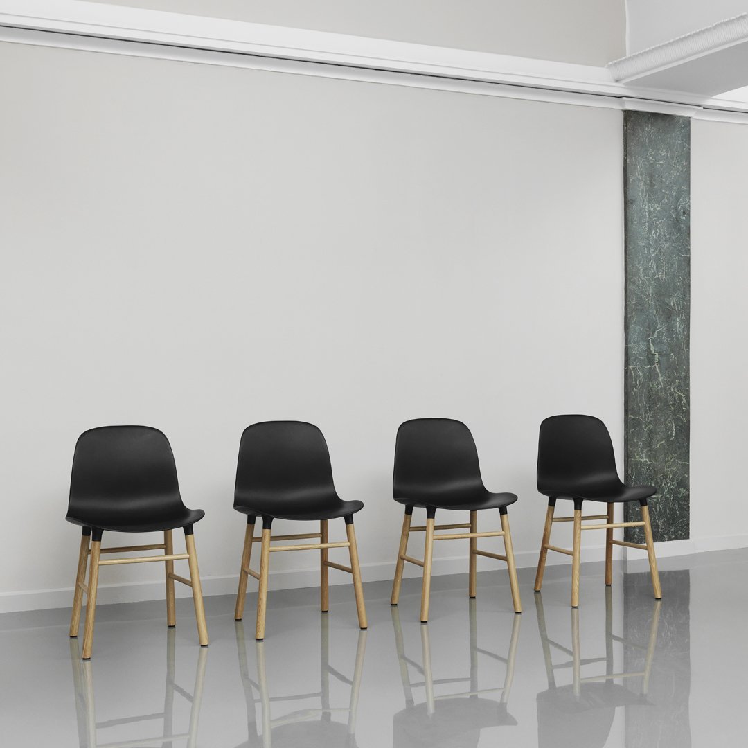 With the mission of creating a shell chair with a more unified look that would stand as one cohesive unit, Simon Legald has created the Form Chair for Normann Copenhagen.To achieve this seamless, integrated look, a new and innovative solution for joining the seat and the legs was developed. The molded plastic seat and frame of oak, walnut or steel are naturally integrated with the seat using a unique cup system. The plastic seat and wood or steel legs meet elegantly, accentuating the high quality craftsmanship of the design.