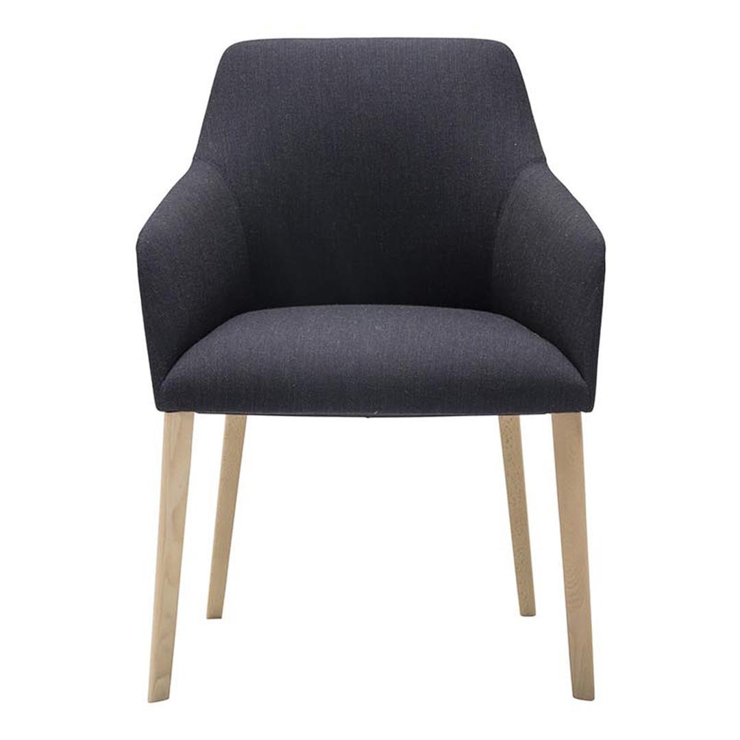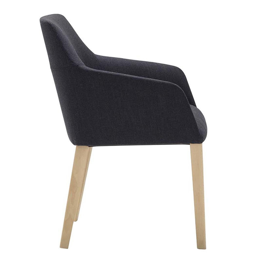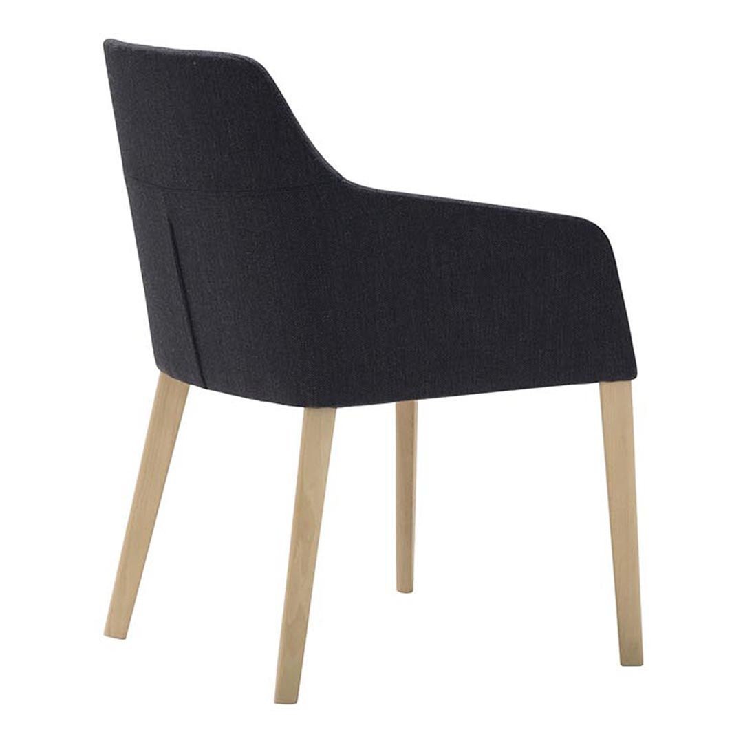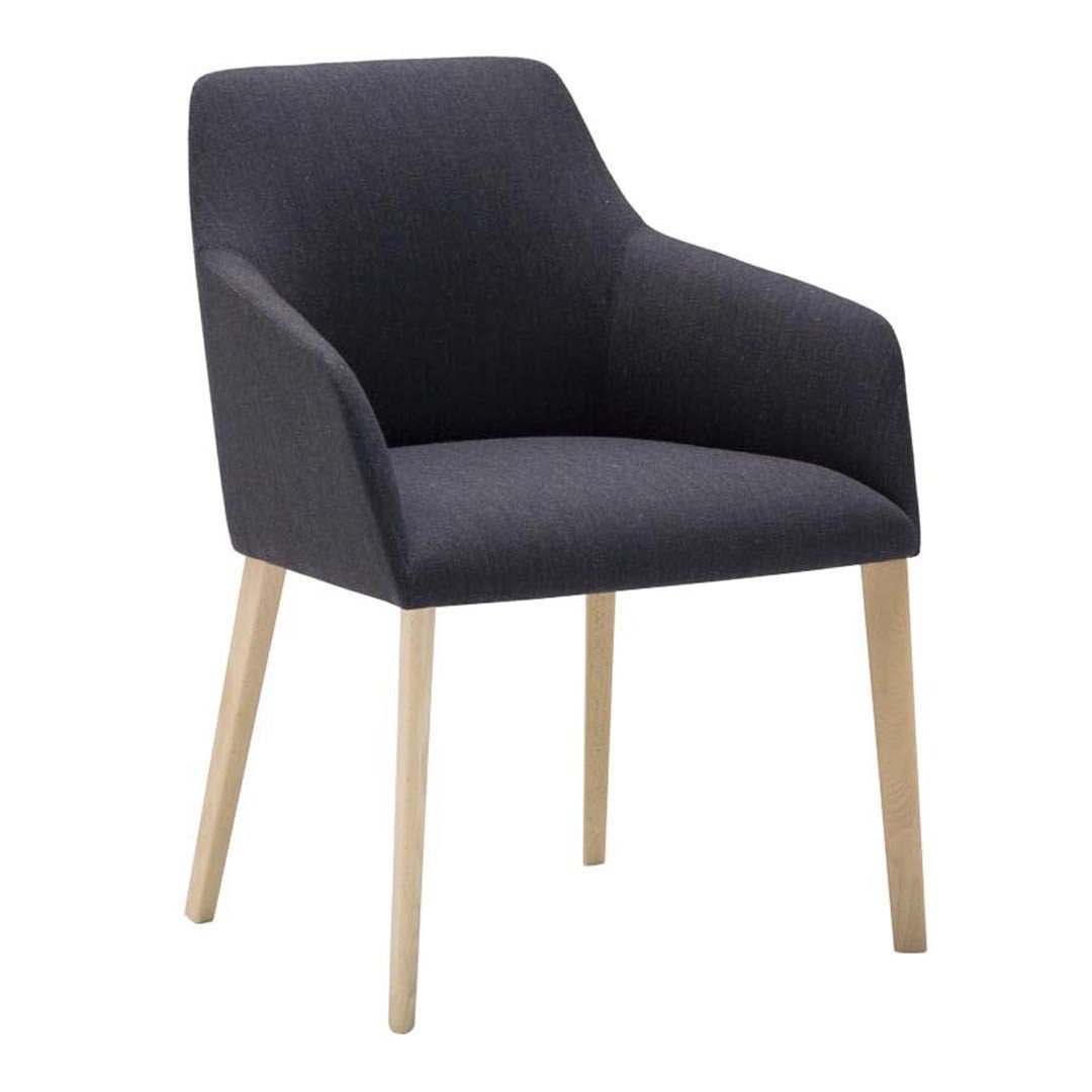 Armchair with upholstered seat and backrest and 4 solid beech wood legs.