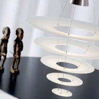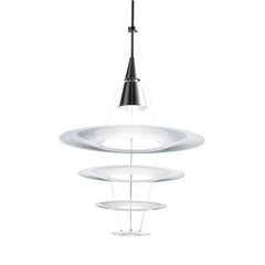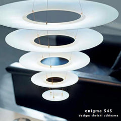 The Enigma pendant was born as a result of the pursuit of high-quality and glare free soft light spreading to the whole space. The four shades will be lit up and emerge into the space. Looking up at the pendant from the bottom, a sequence of the four shades will create a gradation and produce a beautiful harmony.