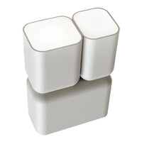 Intended as a work of art, the Tabata lamp unites an industrial aesthetic with a warm light. Tabata was born after designer Luca Nichetto became intrigued by the idea of creating a lamp that appeared to float. Comprised of three interconnected metal modules, Tabata can be oriented by the owner to direct the diffused light source as desired.