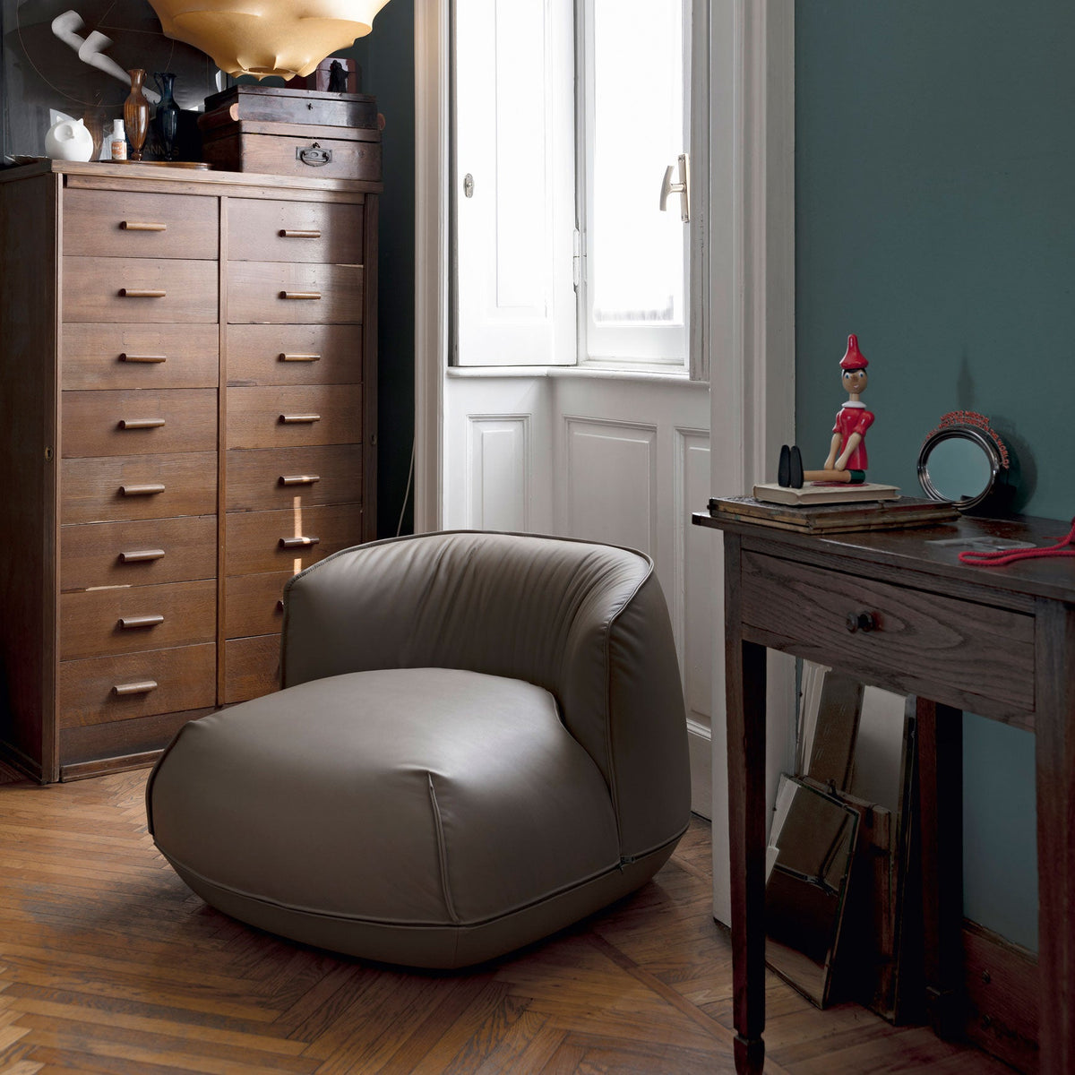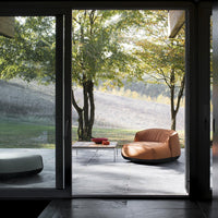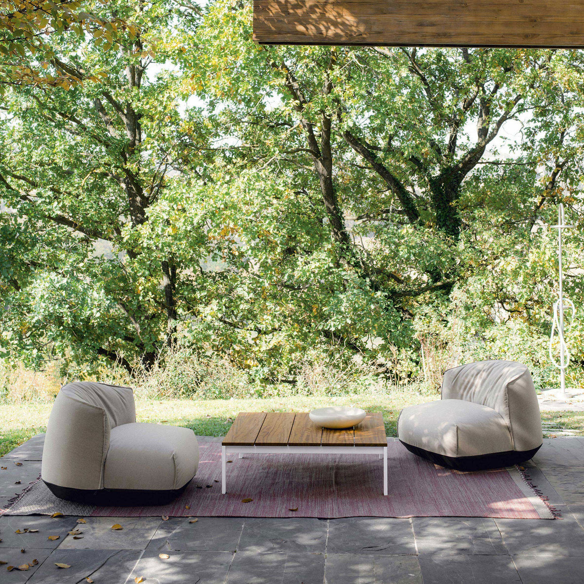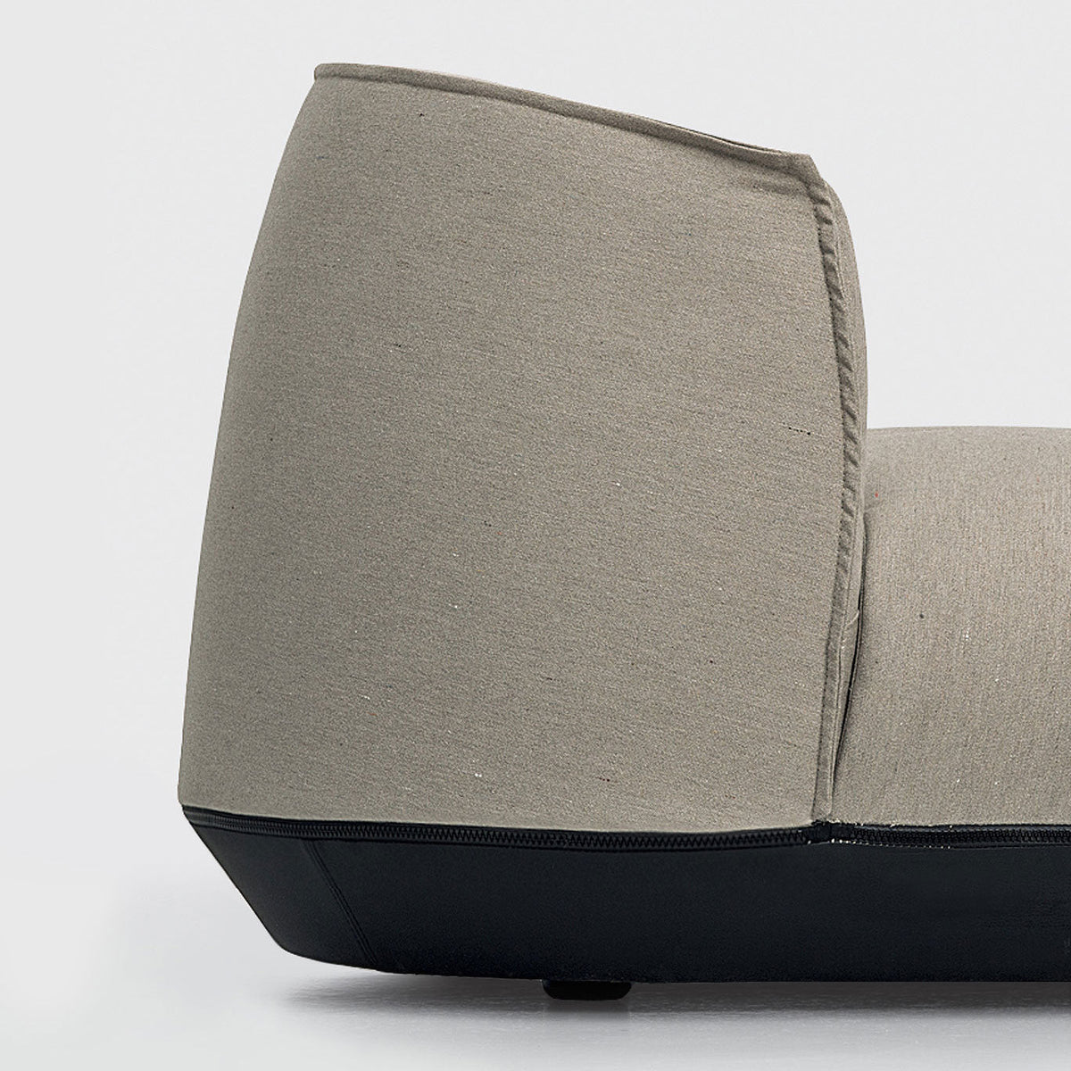 Brioni is an “archipelago” of indoor and outdoor seating consisting of two-seater and three-seater sofas, poufs, occasional tables, lounge armchairs, daybeds and sun-loungers. Some of the items in the range are complemented with new accessories that customise the aesthetic appeal and comfort of the seating. The upholstery is available either with a dark or uni-colour band on the lower part.