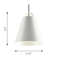 The ABOVE Pendant by Mads Odgard emits a soft light that warms any room. The conical shape and the matte, white-painted inside help ensure even distribution of the light. The opening in the top of the fixture provides decorative illumination of the arch above, and ensures that the fixture retains the full expression of its visual shape both when illuminated and when switched off.