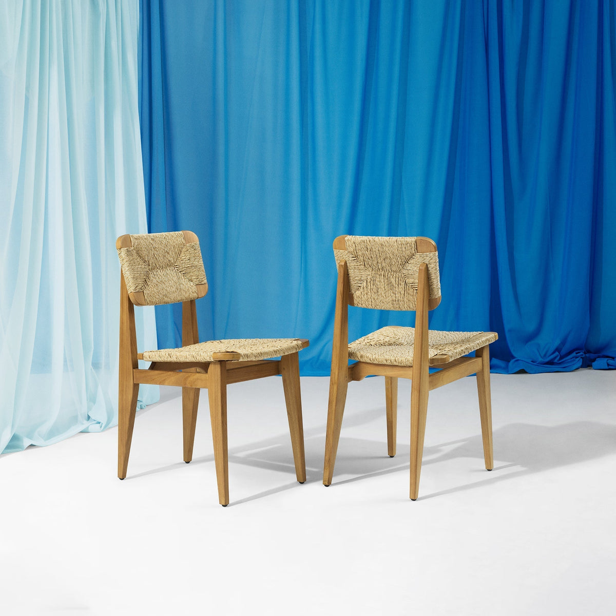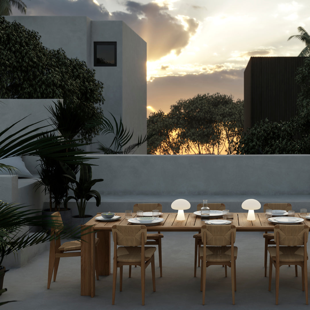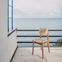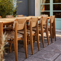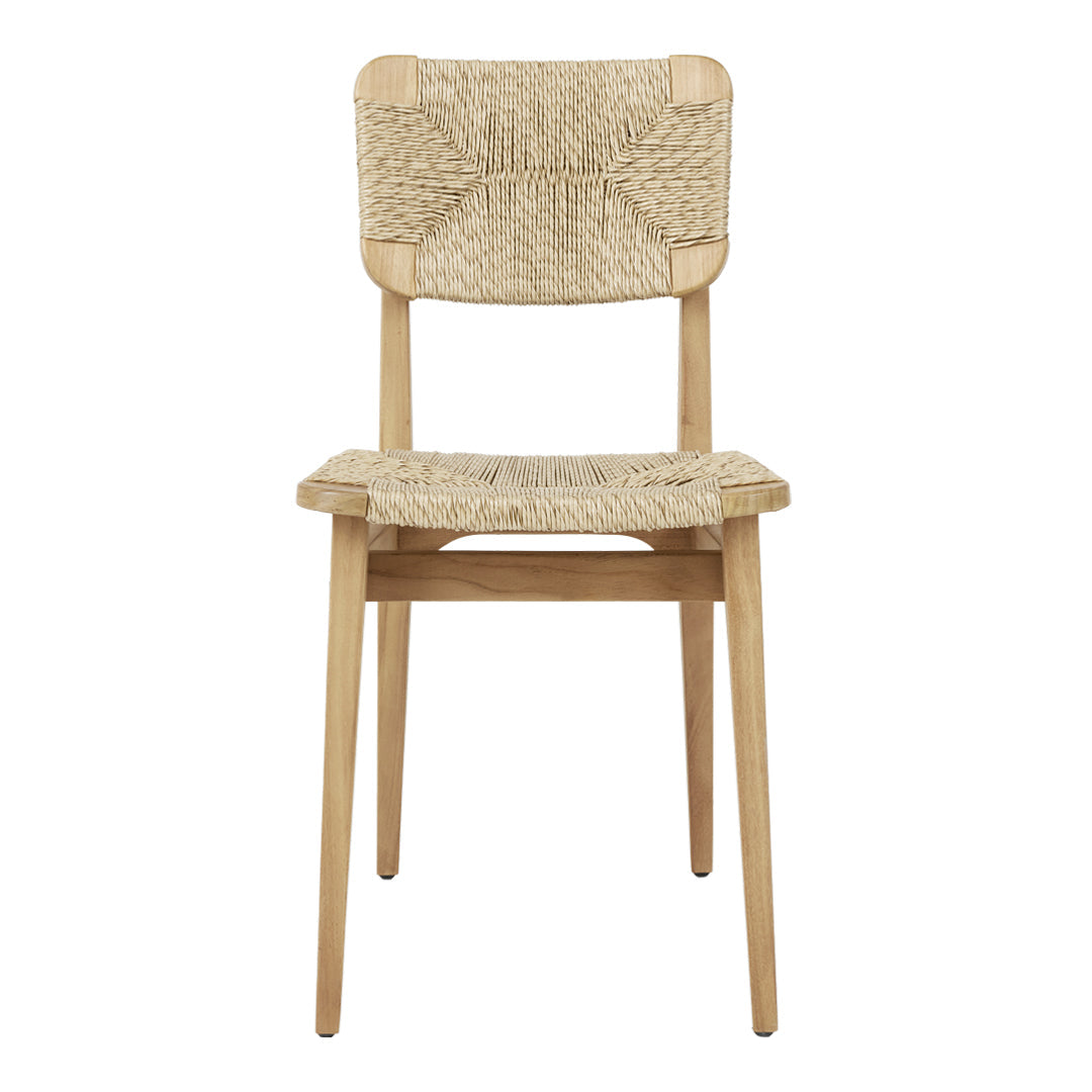The C-Chair optimized for the outdoors in both ergonomics and materiality. Proportions have been fine-tuned to maximize comfort and frames have been carefully crafted with traditional joinery using plantation teak. The seats and backrests are tightly woven from an outdoor all-weather fiber made of an extruded polyethylene and twisted to resemble natural hyacinth woven furniture.