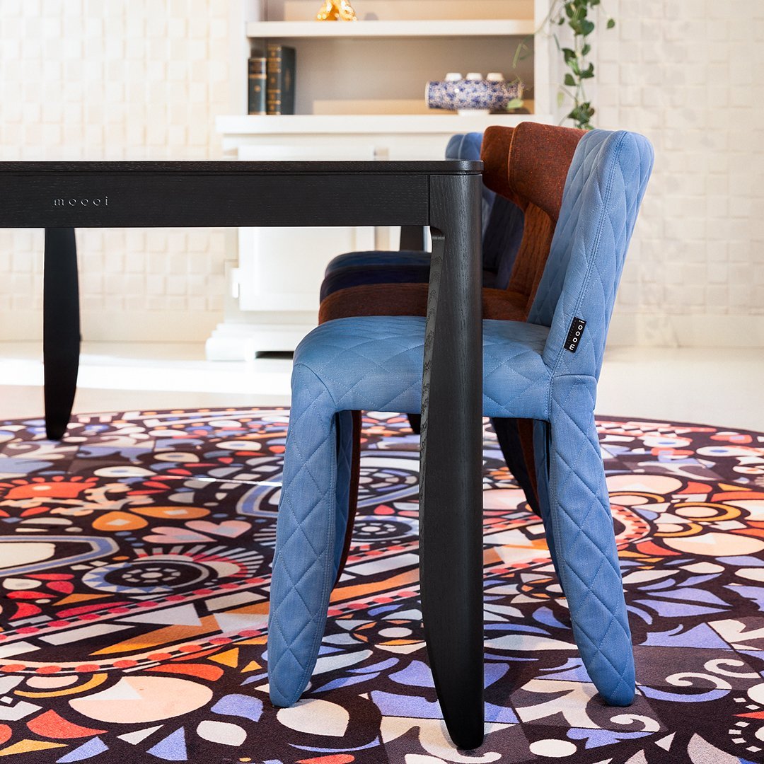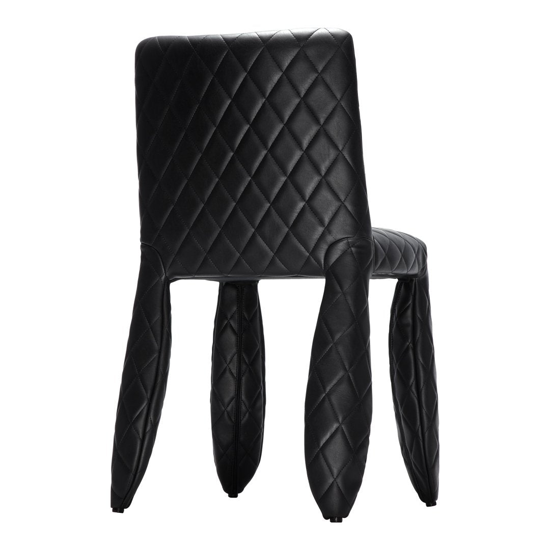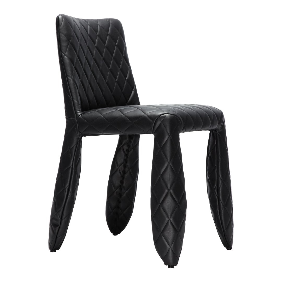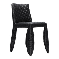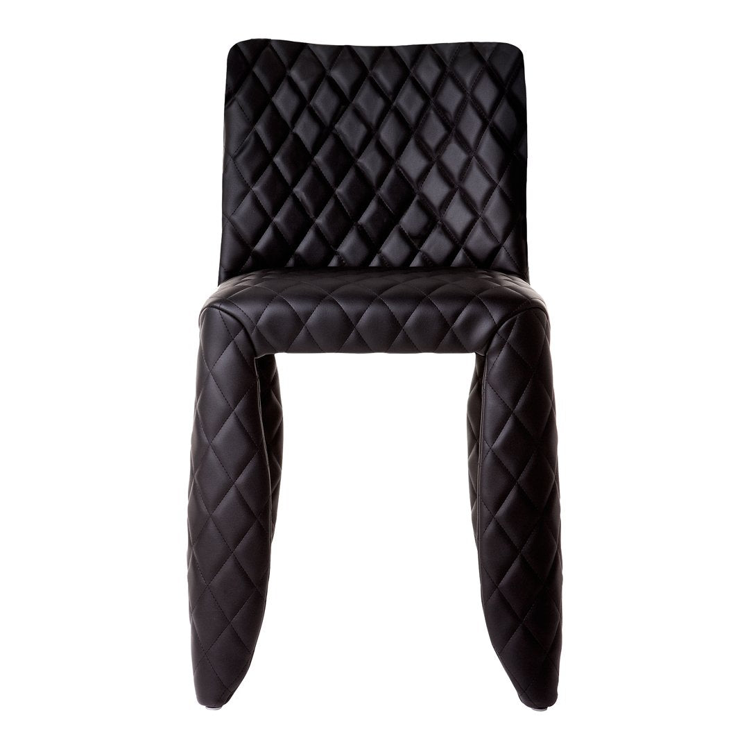 A soft, puffy and stylish chair as symbol of the eternal battle between opposite forces that take place in life and can be easily recognized inside ourselves, if we have the courage to open our eyes. Scary? Not at all! You forget all about the monster once you sit down and enjoy the chair’s comfort and softness. The signature version, the fearless leader of our Monster family, comes upholstered in Moooi Original Black Synthetic Leather with an embroidered face.