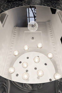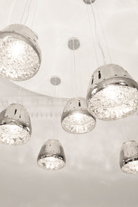 A magic mirror and the power of crystals transform a simple shell into an endless light bouquet of flowers.