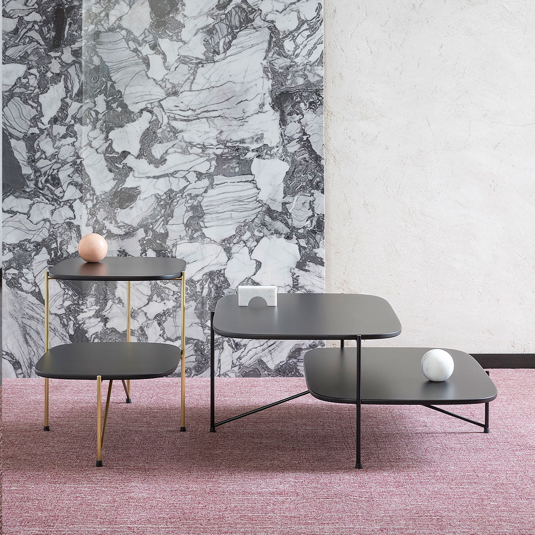 Haiku is a Japanese poem consisting of just three lines and a total of seventeen syllables. The coffee table designed by Marco Zito for Saba Italia is in fact made up of three parts: the frame and the two tops. The slim architecture suspends the tops on two levels which play with the partial overlap of colors, in a simple and well-gauged relationship of balance and proportions. Haiku was designed with a sophisticated color palette. Frame in painted metal rod. Top in lacquered MDF. From 2024, the product has been recalibrated in its proportions to ensure its robustness while maintaining its iconic lightness.