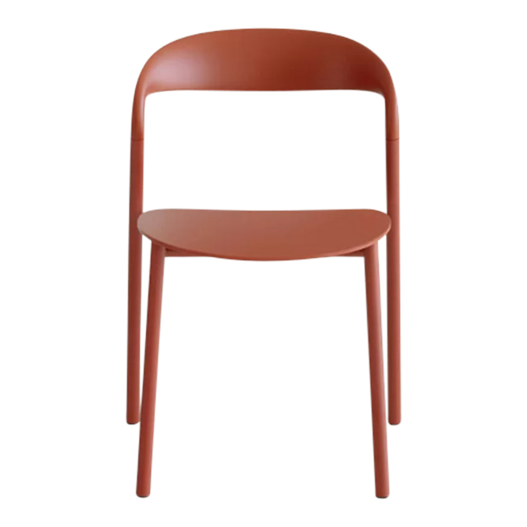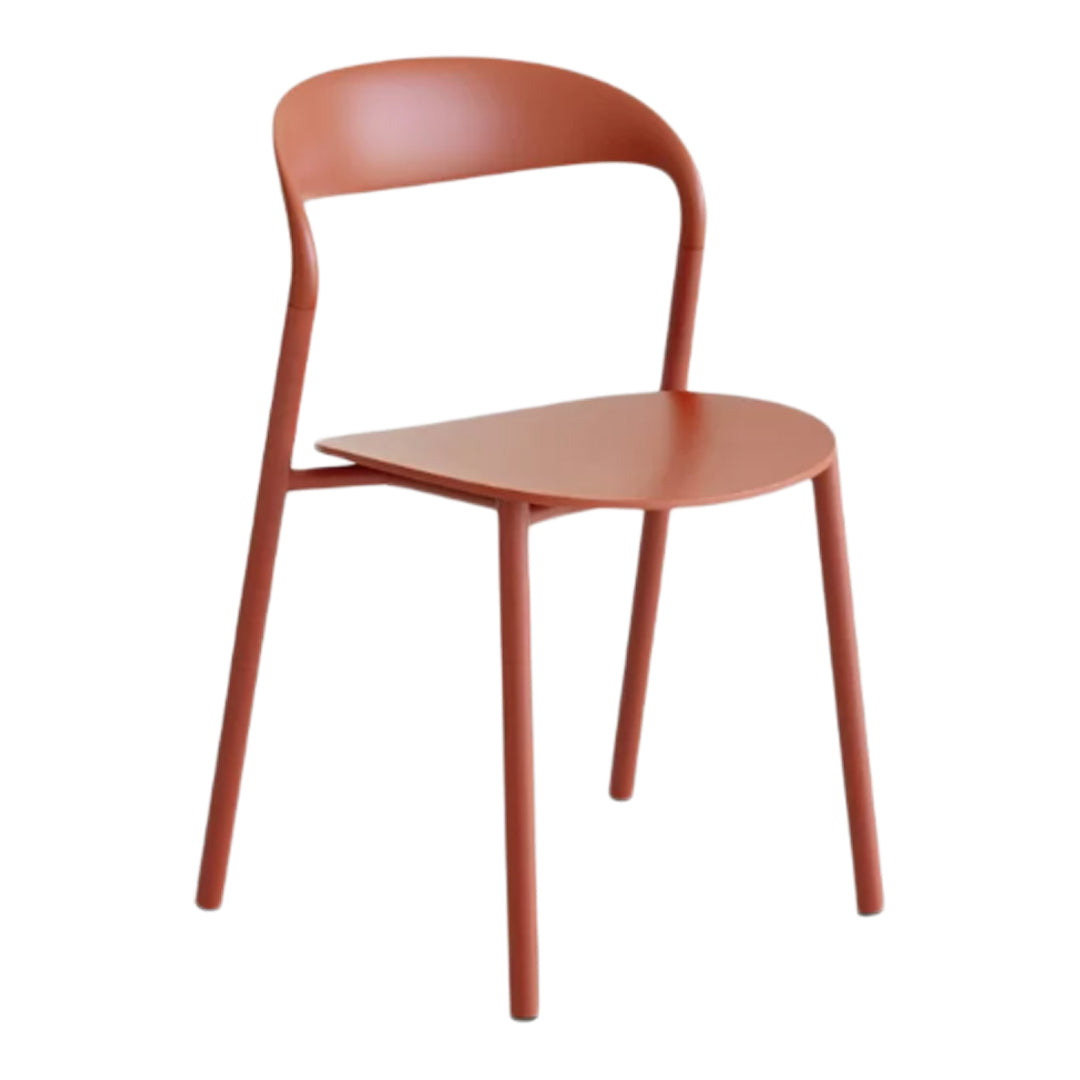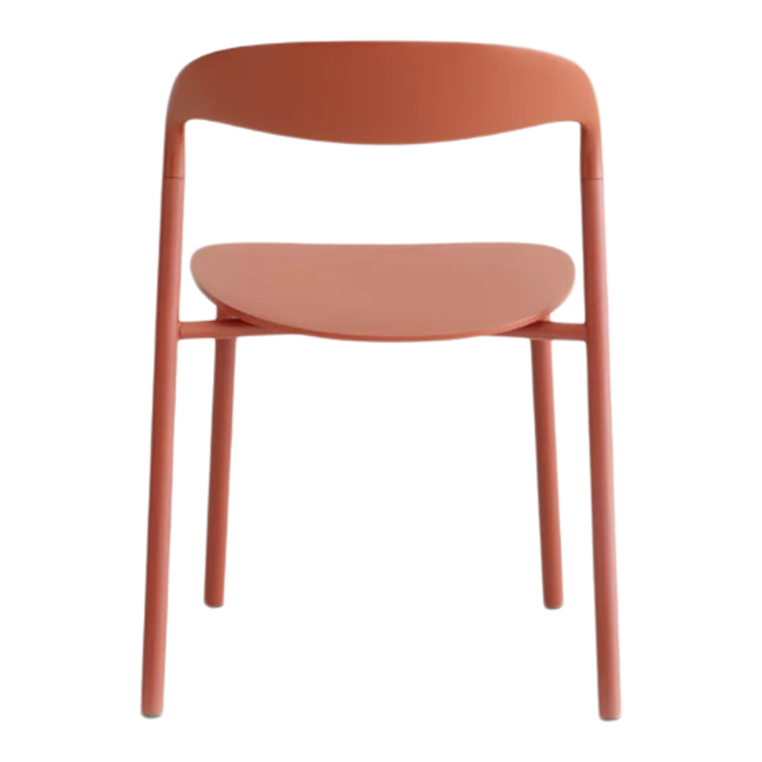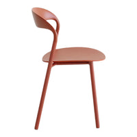 Stackable chair with powder-coated steel frame and polypropylene backrest and seat in various colors. The seat can also be upholstered in fabric or multilayer wood in various finishes. Nylon feet with integrated felt.