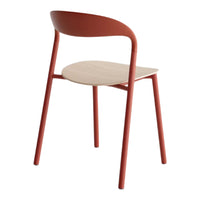 Stackable chair with powder-coated steel frame and polypropylene backrest and seat in various colors. The seat can also be upholstered in fabric or multilayer wood in various finishes. Nylon feet with integrated felt.