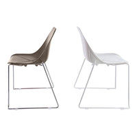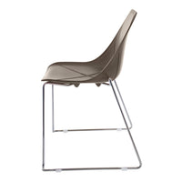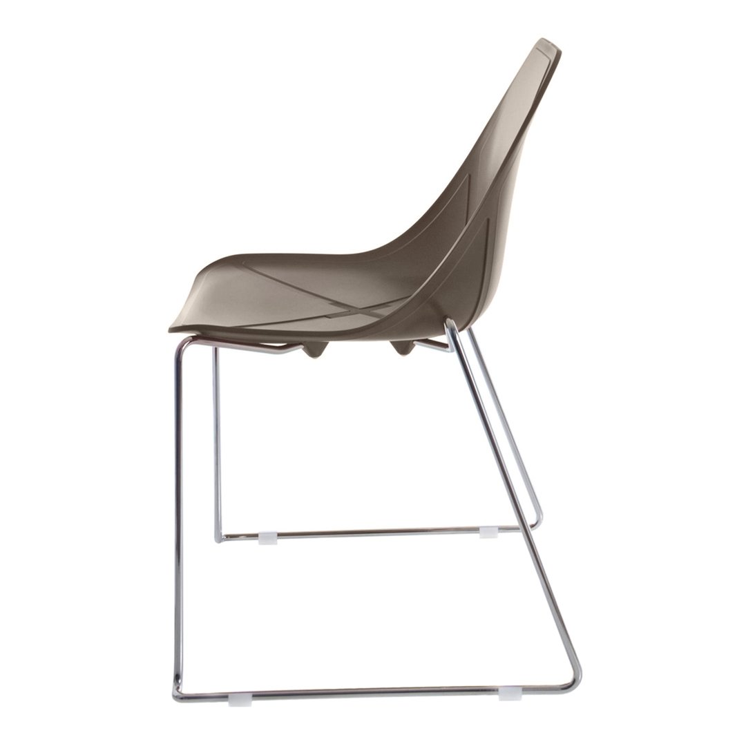 Chair in chromed or painted steel or stained ash wood, 4 legs(also swivel version) or skid frame.Shell in homo-copolymer, “X” on the seat in contrast or in color(wood or plastic material).
