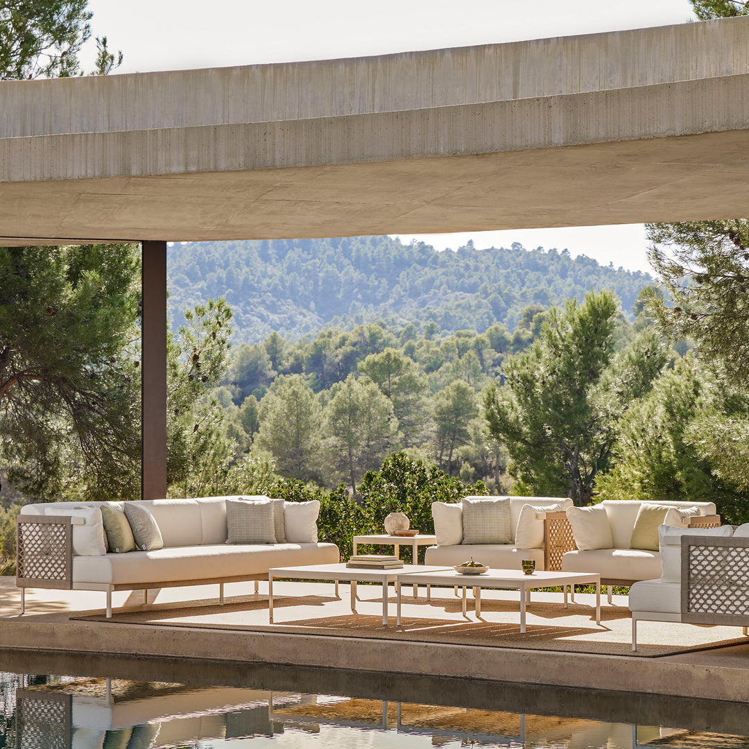 With a purely contemporary aesthetic, Legacy presents a set of outdoor furniture that can be integrated into any interior project. “It is versatile and precise”, says Ruiz. “The intention with it was to provide multiple solutions and make it easier for interior designers or architects to create numerous compositions, both outdoors and indoors. Its appearance is meticulous, and it manages to create sophisticated environments with either of its two lines: Legacy Essence and Legacy Woven.