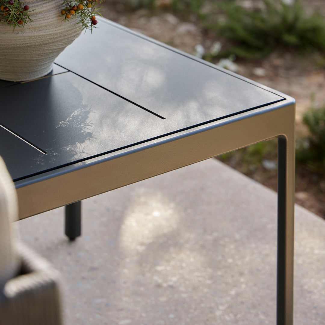 All the pieces in the collection are made with a die-cast aluminum structure that incorporates different materials in the backs and armrests, resulting in two versions, each with their own personality. Legacy Essence is characterized by its simplicity and lightness, as well as its pure minimalist design with an exposed aluminum frame. Legacy Woven, on the other hand, has the peculiarity that its aluminum structure serves as a frame for a carefully designed rope weave. Both versions offer customization options for the armrests and seat front. The collection also includes a selection of tables in various finishes: porcelain, HPL or aluminum.