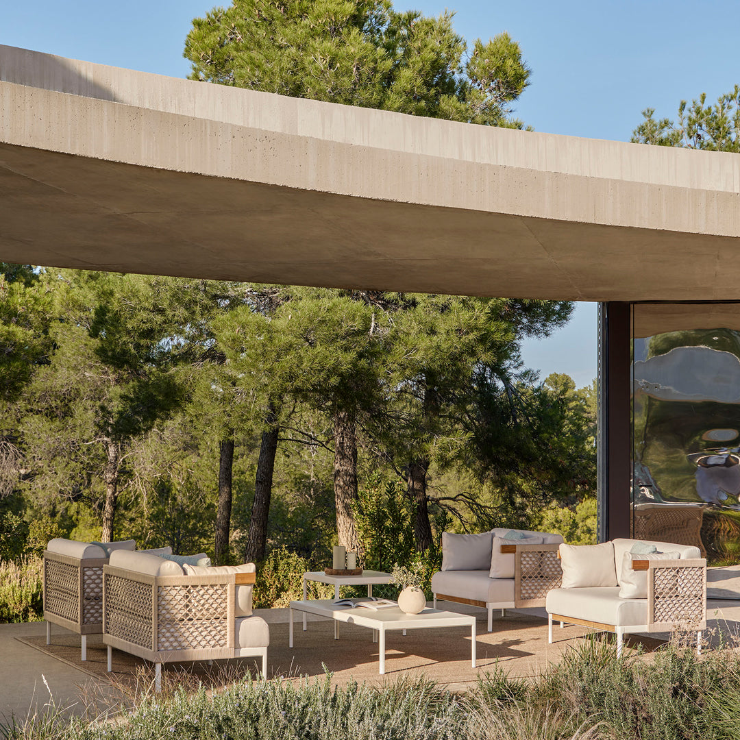 With a purely contemporary aesthetic, Legacy presents a set of outdoor furniture that can be integrated into any interior project. “It is versatile and precise”, says Ruiz. “The intention with it was to provide multiple solutions and make it easier for interior designers or architects to create numerous compositions, both outdoors and indoors. Its appearance is meticulous, and it manages to create sophisticated environments with either of its two lines: Legacy Essence and Legacy Woven.