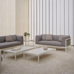 All the pieces in the collection can be stacked, whether they are tables, sofas, loungers, armchairs or chairs. They also fit into different compositions with great ease, creating living, dining and relaxing areas. The dimensions are precise and have been carefully studied so that it is possible to create compositions either for spaces measuring just a few meters or for large areas. These three key elements make Origin a versatile ally both for the home and for contract or hospitality projects.
