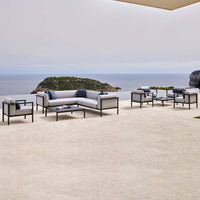 The structure of all the pieces is made from powder painted aluminum finished. This material was chosen for its durability and because it is 100% recyclable at the end of its useful life. The surface of the seats and backs of the chairs and loungers is made from texiline and the cushions are upholstered in fabrics with guaranteed resistance against sun exposure. Origin is a long-lasting collection in terms of both materials and design –beyond ephemeral trends– because without durability there is no sustainability.