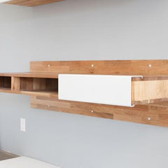 Perfect for small spaces, the LAXseries Wall Mounted Desk attaches to the wall and makes legs seem like pointless obtrusions. Convenient cubbies underneath do away with drawers, allowing for quick stowing and access.