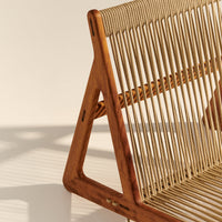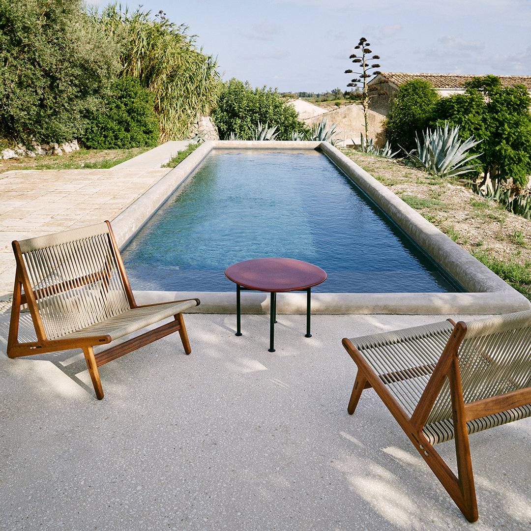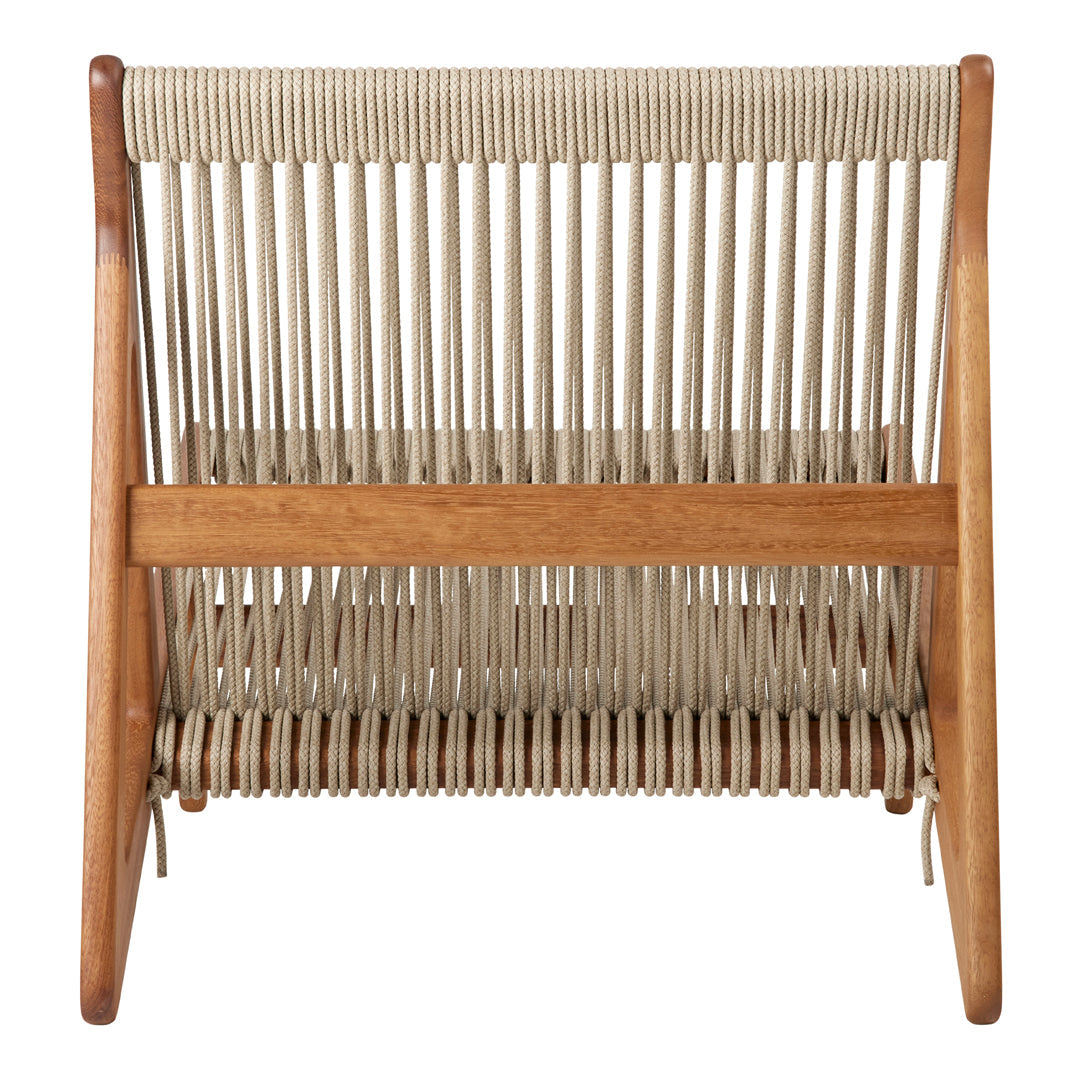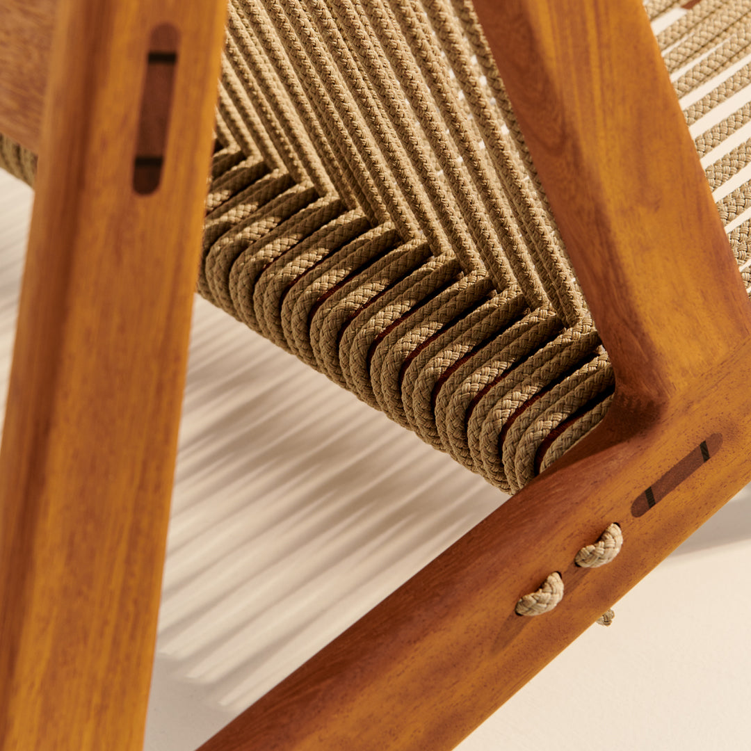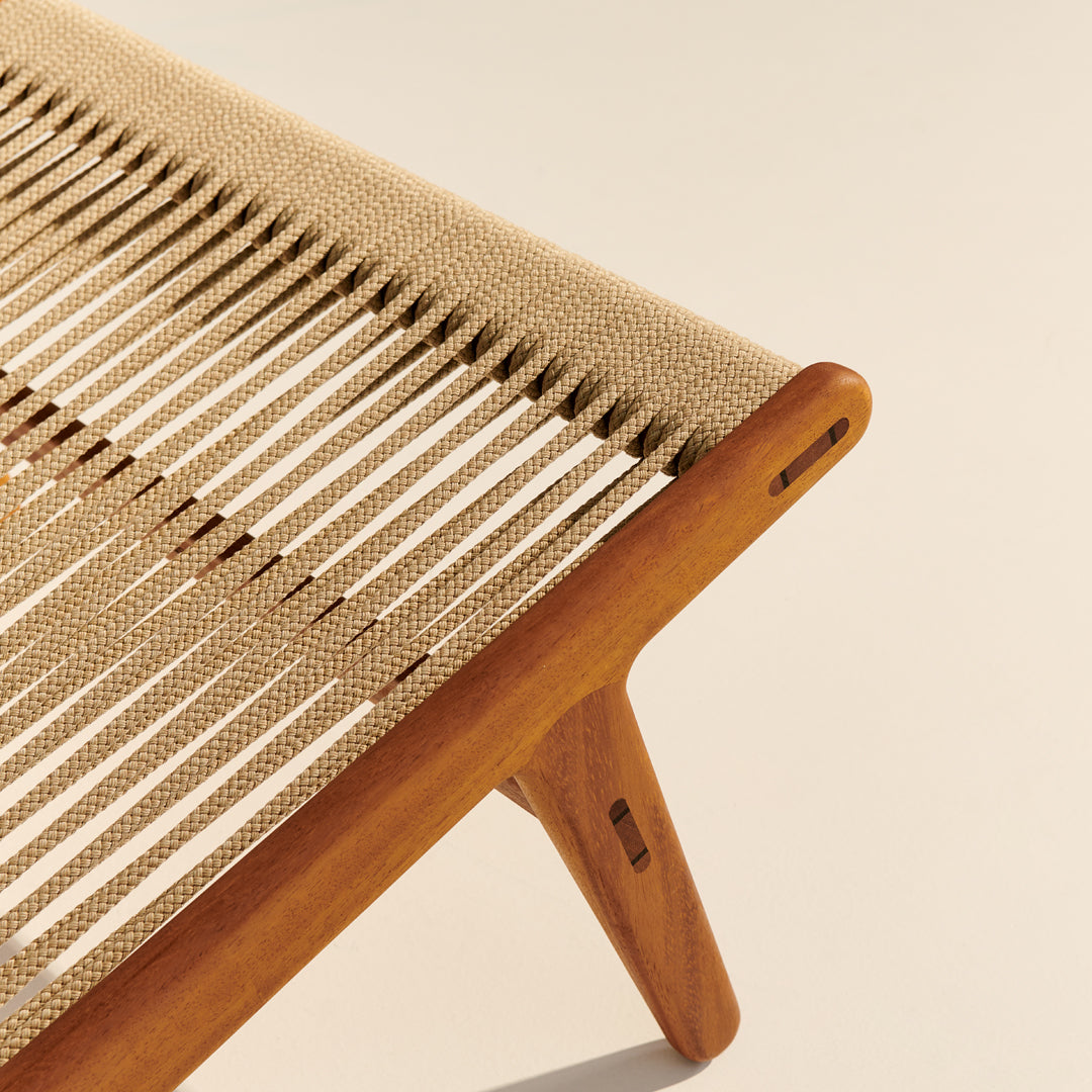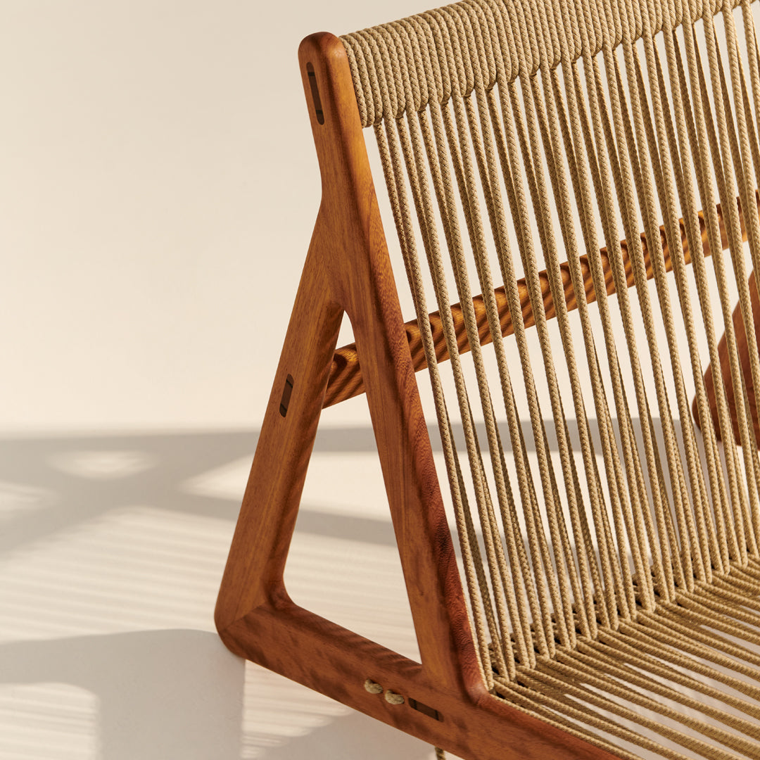 With its low-slung wooden frame and nautically evocative rope seat and backrest, Mathias Steen Rasmussen’s breakthrough MR01 Initial Lounge Chair has begged to be taken outside since its creation. Where the frame of the indoor edition is made from oak or walnut, the MR01 Initial Outdoor Lounge Chair is crafted from FSC-certified iroko.