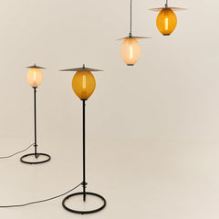 Playful and modern even 70 years after their first creation, both Satellite designs are ideal for installation on covered patios, verandas, or other sheltered dining areas. Two sizes of pendant are available, and both the pendants and the floor lamp are available with a semi-matt shade in either Cream White or Mustard Gold.