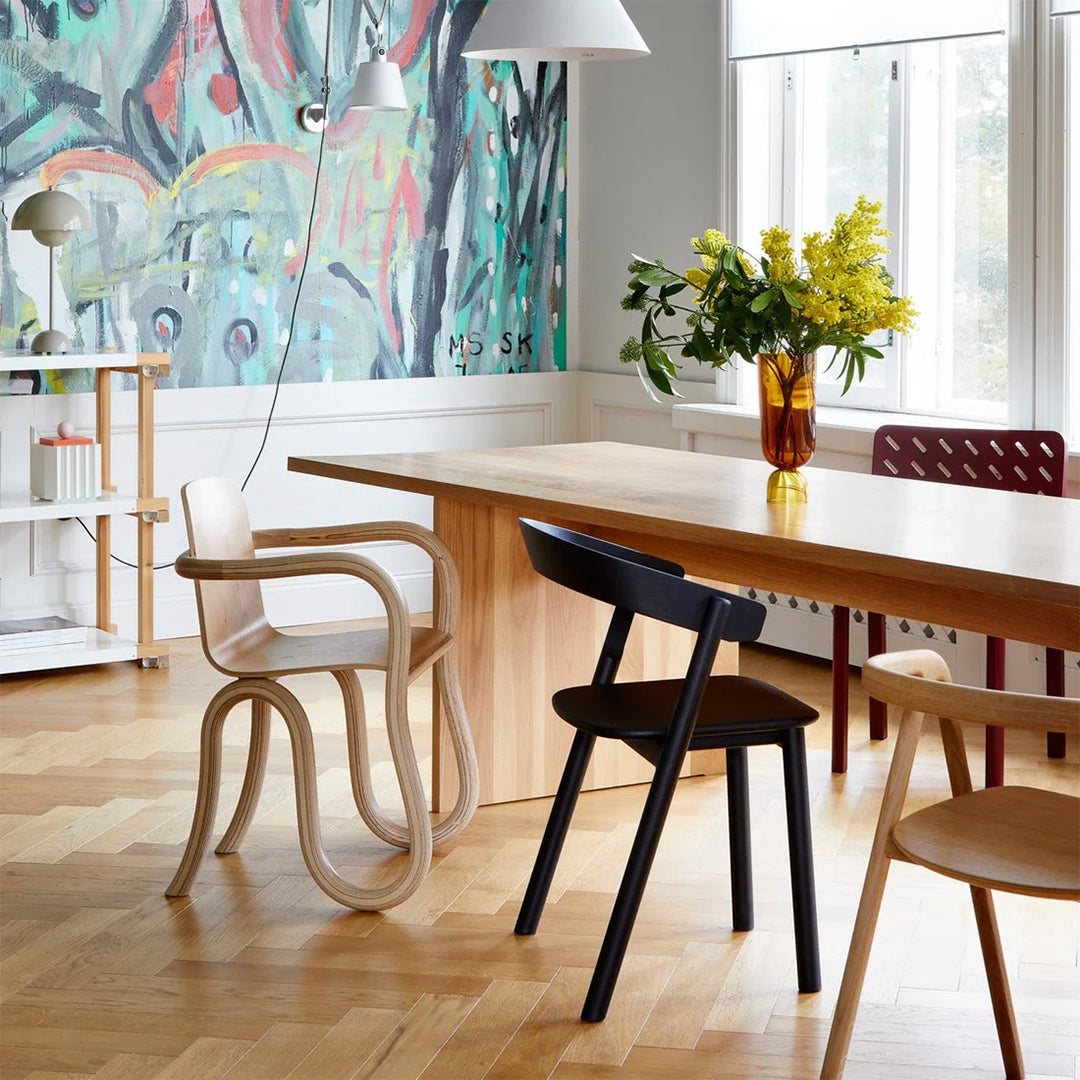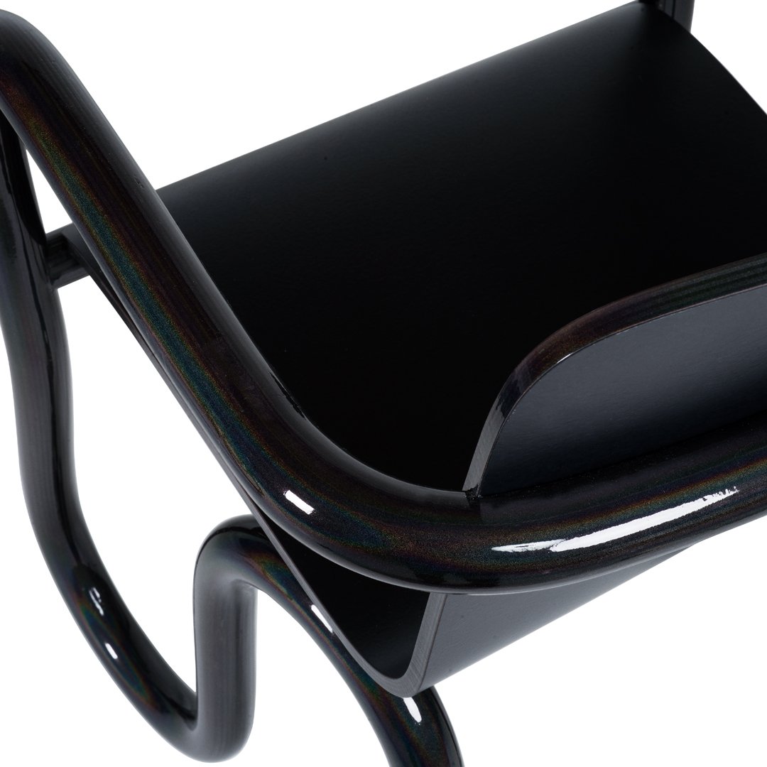 "Kolho is a series of tables and chairs formed of right angles and serpentine forms. It is inspired by Apollo landing and a small town called Kolho in Finland. The serpent represents temptation and chaos which supports the flat plane of reason. The space between Reason and Chaos is that of PLAY. This is the space where our human animal truly shows its greatest self." — Matthew Day Jackson, artist (Hauser & Wirth).