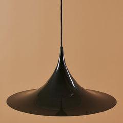 The Semi Pendant is a unique pendant lamp, based on two quarter-circles put together, back-to-back. It's distinctive arch-shaped, enamelled metal shade creates a diffused, cone-shaped light, ideal over a dining table or kitchen work surface. With its lightness of form, unique timeless design and range of colours and sizes, the Semi Pendant is extremely versatile and well suited to both private and public spaces.