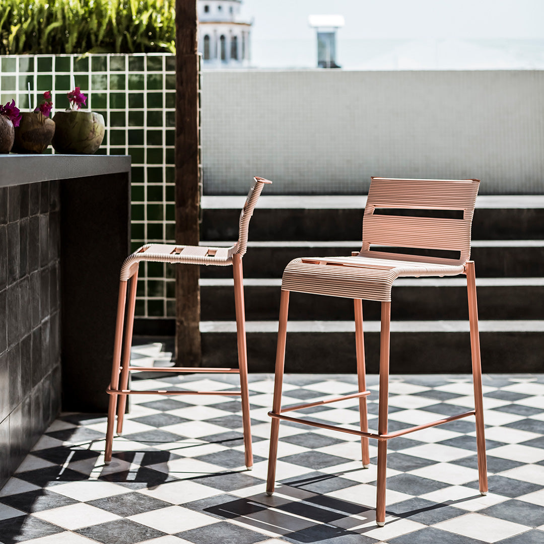 This collection is designed as an alternative to the well-known French outdoor bistro chairs. Enjoy Barcelonette on your patio alongside a good breakfast, or use it to infuse your kitchen or bar with a lot of color and personality. Practical, adaptable and fun!