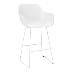 This bar stool is the tallest in the Captain’s Chairs family and has a super-ergonomic shell, a tall galvanized or powder coated steel frame and a comfortable footrest. The seat with integrated armrests can be upgraded to the seat-cushion version for added color and comfort. Feel free to set your bar stool by the pool - it’s made of durable, UV-stable and waterproof materials.