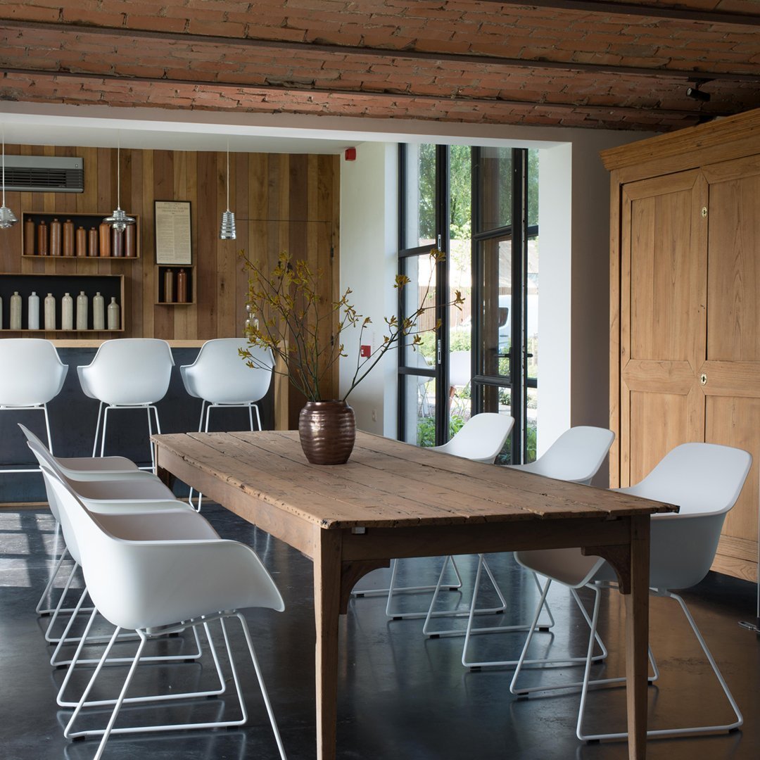 This shell-shaped chair can be used in a variety of environments thanks to its versatile frame. Both the powder-coated and Galvanized versions can be used outside.