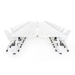 The Marina picnic set is available without the attached seating benches to create a free-standing table. What makes this range unique is the fact that you can put together your own personal table arrangement. Marina table and Marina picnic are not only unlimited in length, you can also extend their long architectural lines from the terrace through to the dining room, from the office workspace through to the office canteen. Boundaries blur between work and play, indoors and outdoors. Individual spaces become shared spaces, and this range is specifically designed to make sure there is unity and simplicity in your private house or project.