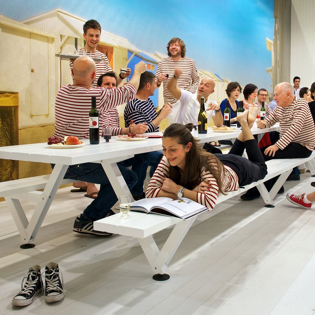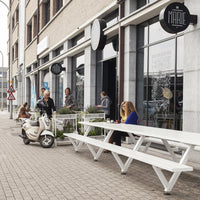 Metrica chose the most basic shape for its picnic bench which is made from pultruded glass fibre Profiles and created a seemingly endless table. The Marina range of picnic benches is theoretically unlimited in length although it is made in one piece. This particular design once again shows Extremis' philosophy of Tools for Togetherness'. It has never been easier to have a large group of people over for a picnic! This designer outdoor picnic table is perfect for entertaining large groups of guests, friends and family and is available in lengths of up to 12 m, which is enough to seat around 40 people together at the table.