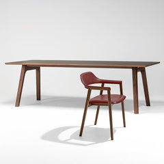 The TEN chairs feature and eco-friendly, flexible polycarbonate arm and back, mounted on a solid wood frame. Clean lines and a light minimalistic appearance make these chairs an elegant addition to any setting.