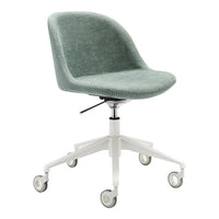 Task swivel chair with 5 star base in lacquered steel. Chair fitted with gas mechanism for height adjustment. Shell upholstered in leather, faux leather, or fabric.