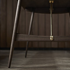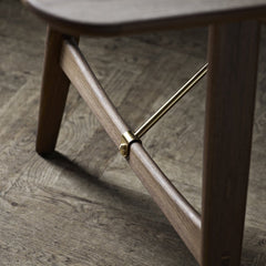Table top: veneer, solid wood edges | Table base: solid wood | Cross bars: stainless steel or brass