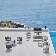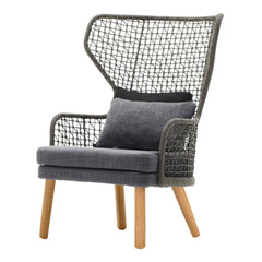 The Emma Bergere Armchair features a backrest made of iconic rope weaving, a refined detail that emphasizes shape and design. The rope weaving is enhanced thanks to the Bergere's unique shape. The Bergere stands out for its elegance and adaptability in convivial moments or reserved spaces in every outdoor environment: gardens, terraces and balconies, porches, patios, pools.