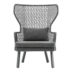 The Emma Bergere Armchair features a backrest made of iconic rope weaving, a refined detail that emphasizes shape and design. The rope weaving is enhanced thanks to the Bergere's unique shape. The Bergere stands out for its elegance and adaptability in convivial moments or reserved spaces in every outdoor environment: gardens, terraces and balconies, porches, patios, pools.