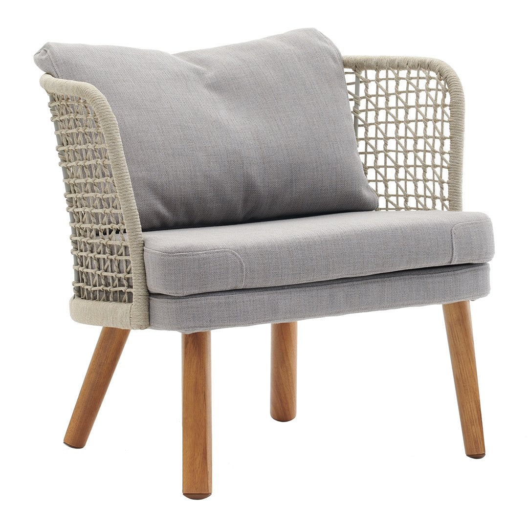 The Emma Lounge Armchair features a backrest made of iconic rope weaving, a refined detail that emphasizes shape and design. Its main feature is its comfortable size and pleasant spacious seat. These features guarantee total relaxation for every space and outdoor environment, including gardens, terraces and balconies, porches, patios, pools.