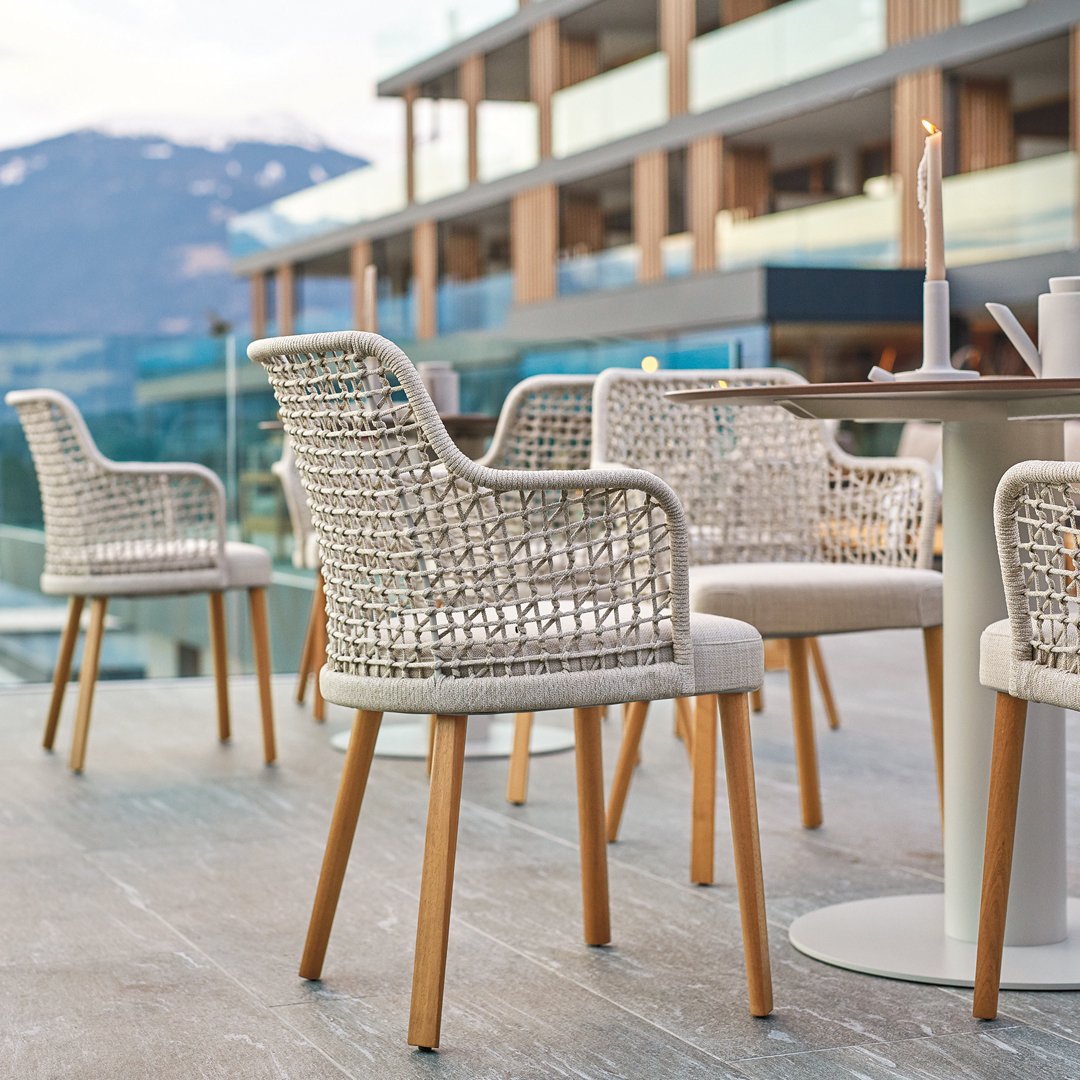 Emma is an outdoor armchair with multiple combinations, making it suitable for any situation and mood. It is ideal for outdoor use in both private or contact environments.