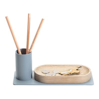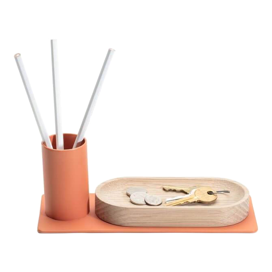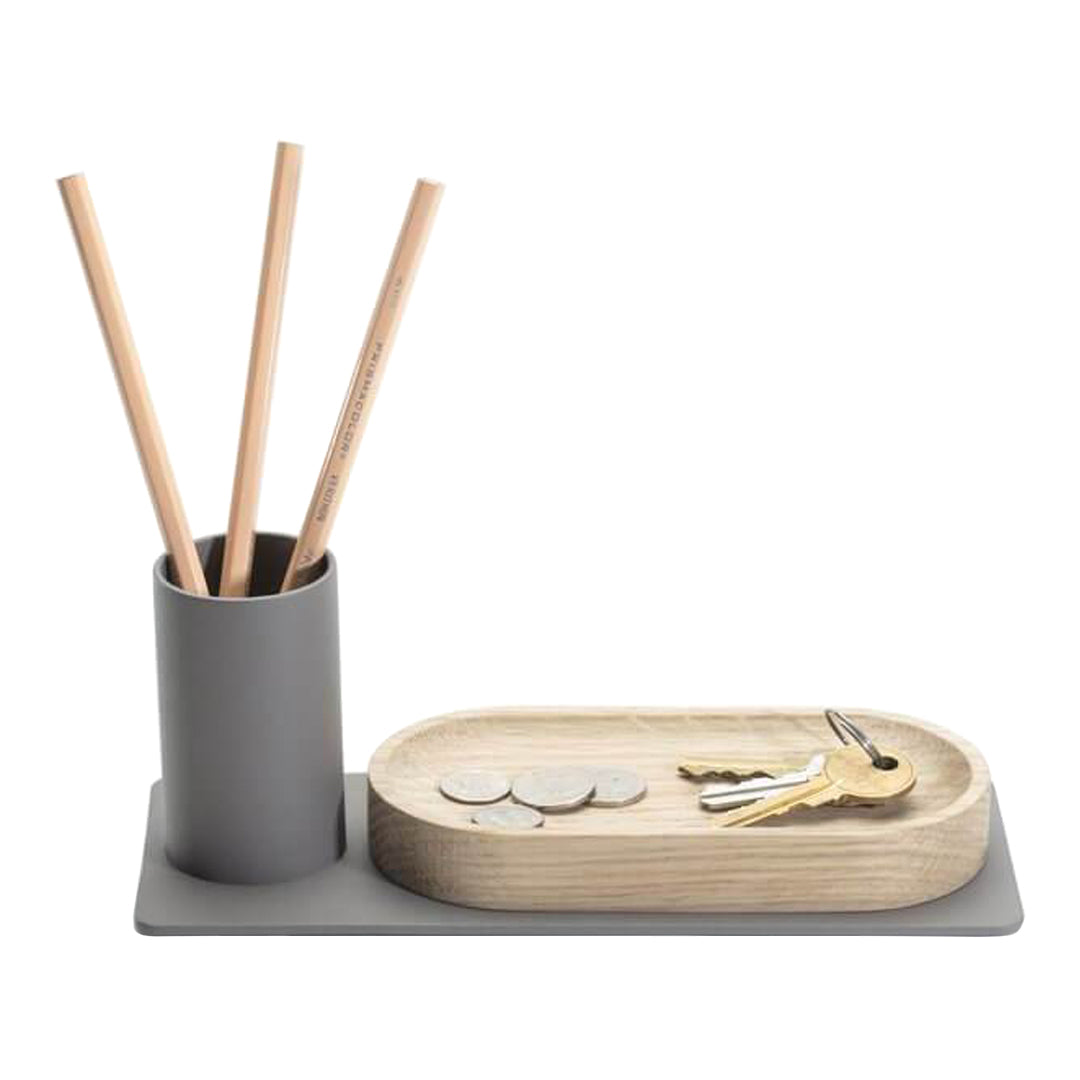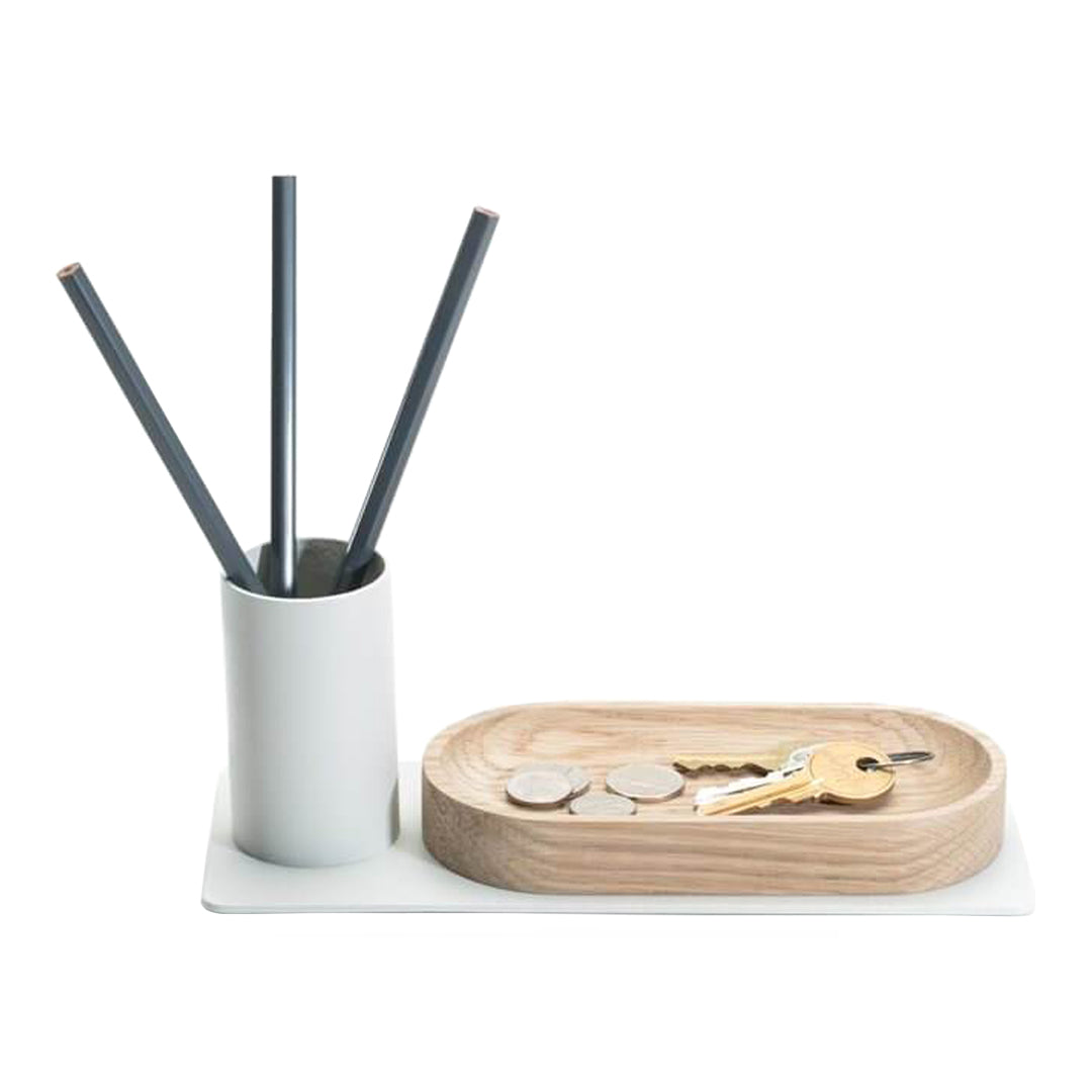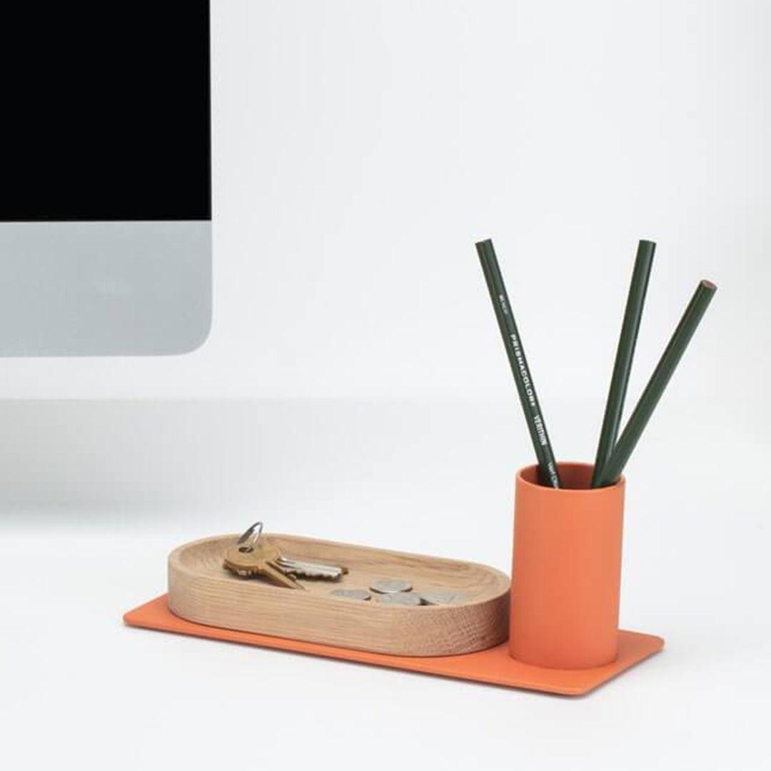 Cody is a minimal desktop organizer that combines pencil cup with a wood tray to keep clutter at bay. Its elemental design and five available color options create a fun alternative to boring desk accessories.