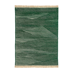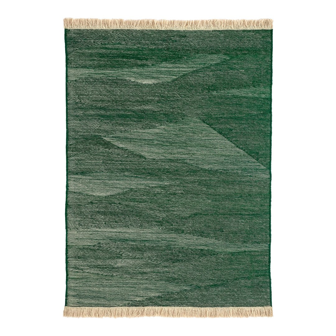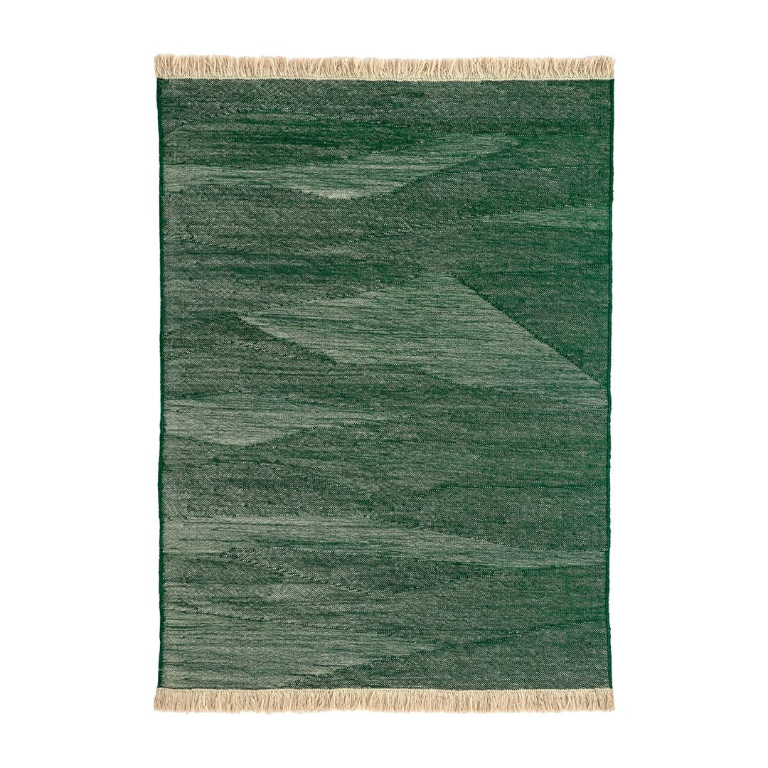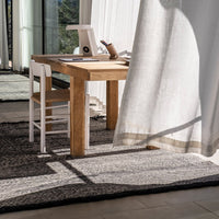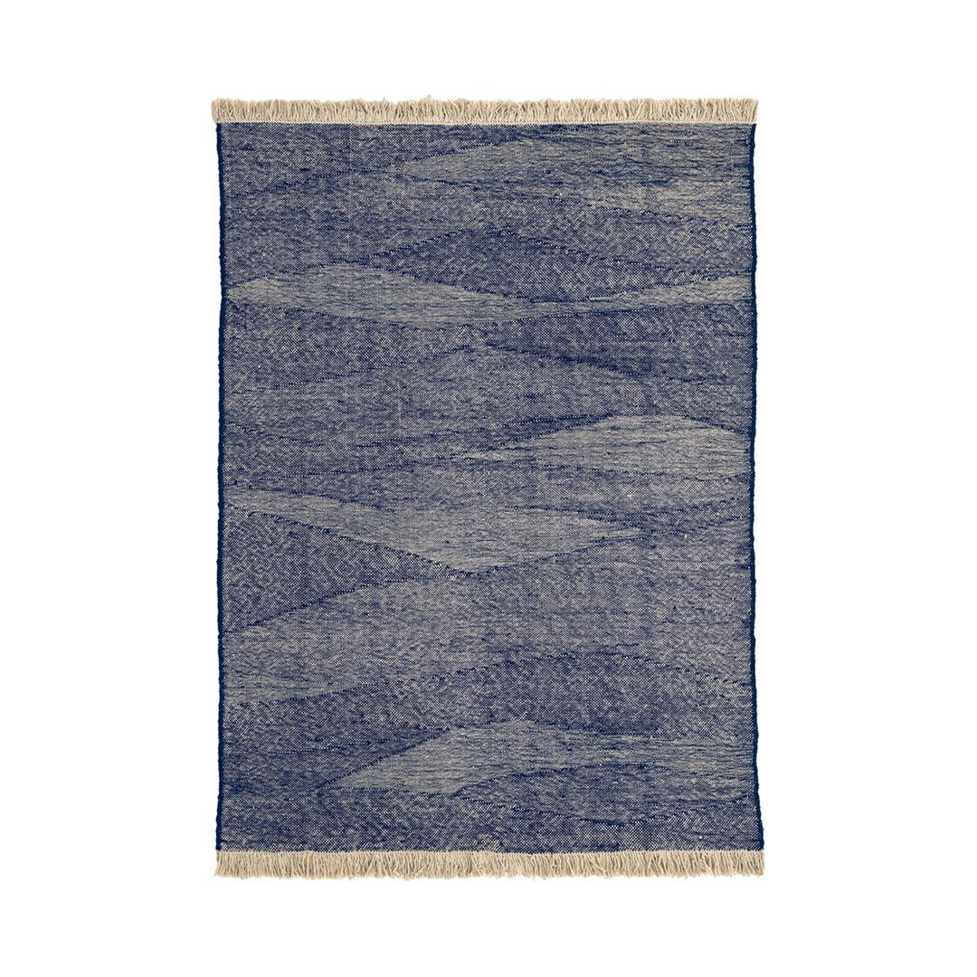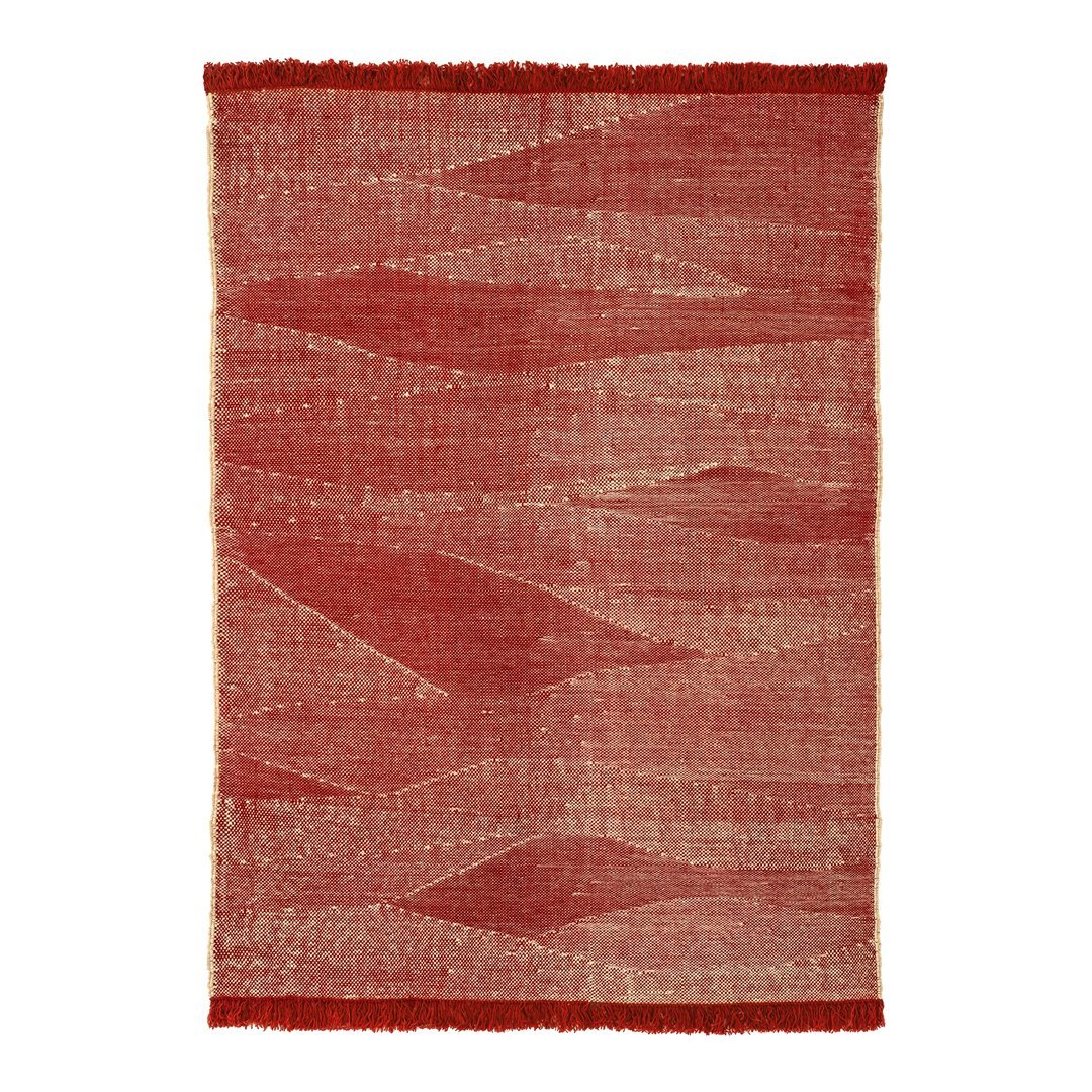 By combining the techniques used in kilims and typical dhurries, we have created a unique set of textures and rhythm through the variation and pressure of the fibers. The changes in the pattern, which are born from the tension applied between weft and warp, give the rug an appearance full of nuances, thus evoking the most primary manual work: the insistent trial and error process of the craftsman from which magical results arise.