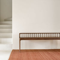The Spindle collection found its inspiration in the traditional spinning wheel and incorporates perfectly aligned spokes into the backseat. Wherever you choose to place it, the Spindle bench in solid reclaimed teak is a striking piece. Reclaimed teak offers a truly unique finish for each and every item — the origin of each hand-finished piece of furniture carries its own story in its material.