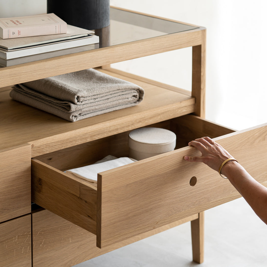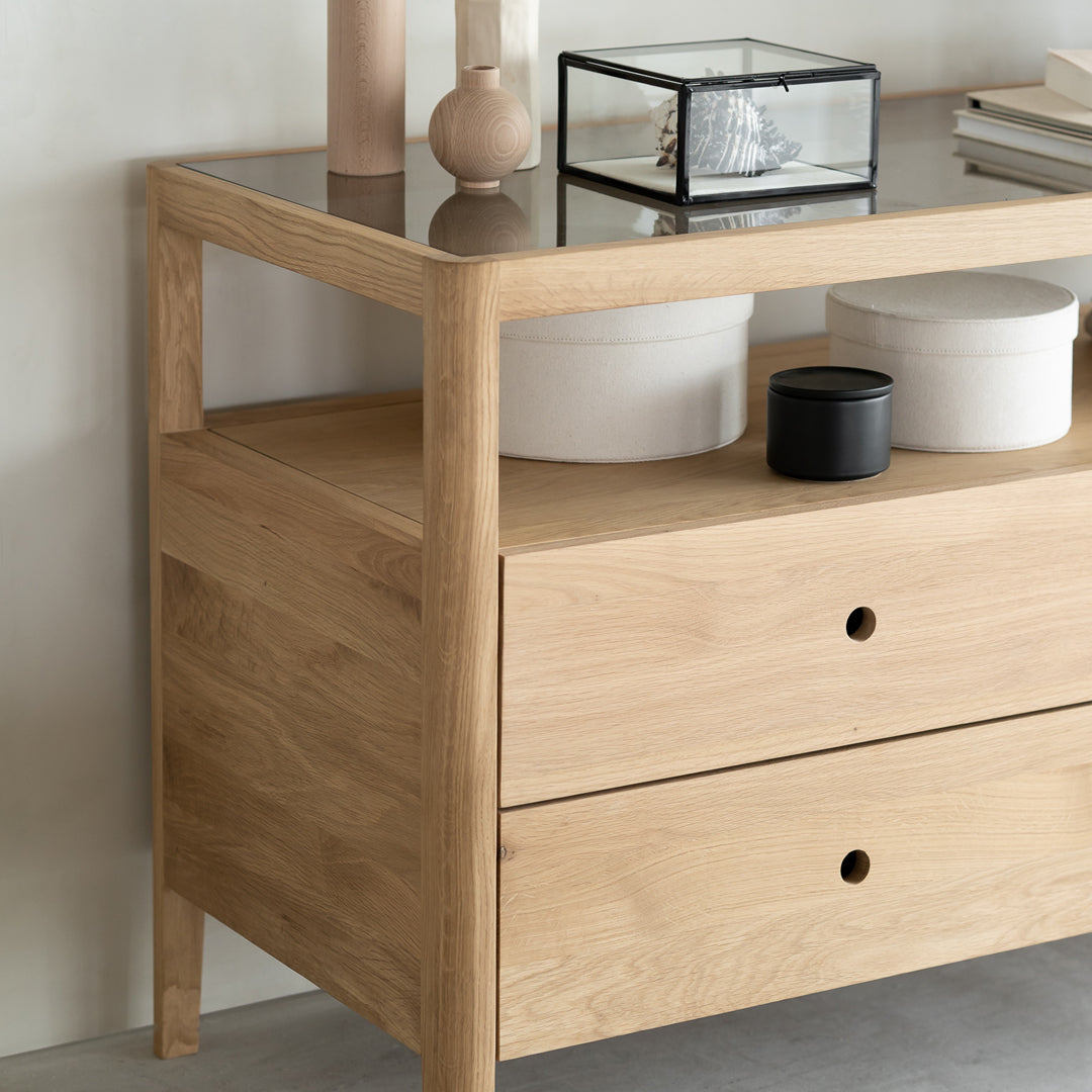For regular dusting use a dry cloth. For cleaning, or in case of a spill, use a damp cloth and natural soap. Dry with a soft clean cloth. Do not use abrasive products. We always recommend using coasters, mousepads, or placemats on surfaces as heat and extreme repetitive daily use can damage the finish.
