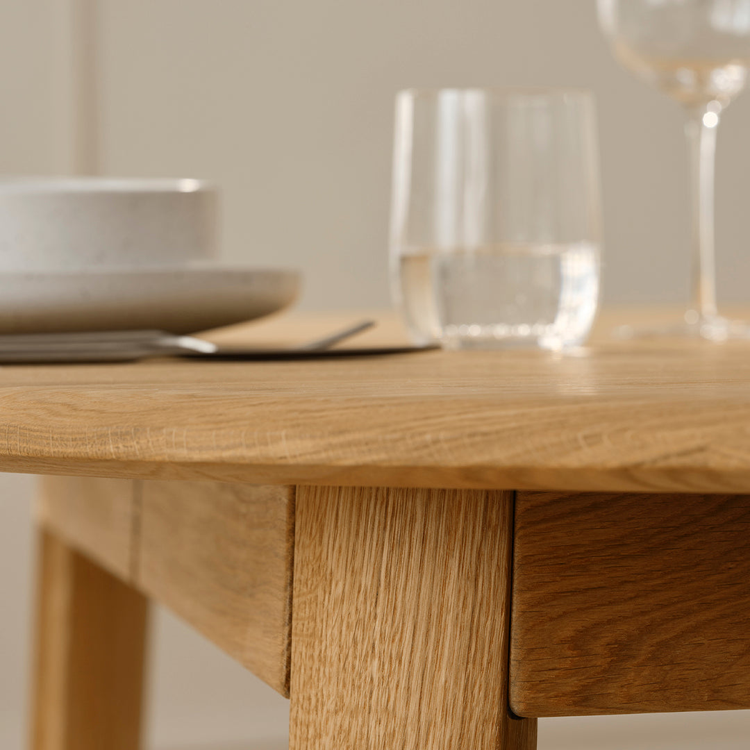 Timeless design meets solid wood craftsmanship. That’s the story behind the Palo dining table series made from solid, FSC™-certified oak with refined details. Available in both fixed and extension styles, the tabletop showcases elegantly arranged planks that harmonize beautifully with a range of interiors. The soft, continuous curves of the legs and edges add a touch of refinement, while the durable construction ensures longevity. Perfect for any dining experience, whether it’s a small, relaxed gathering with friends or a larger family dinner.