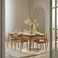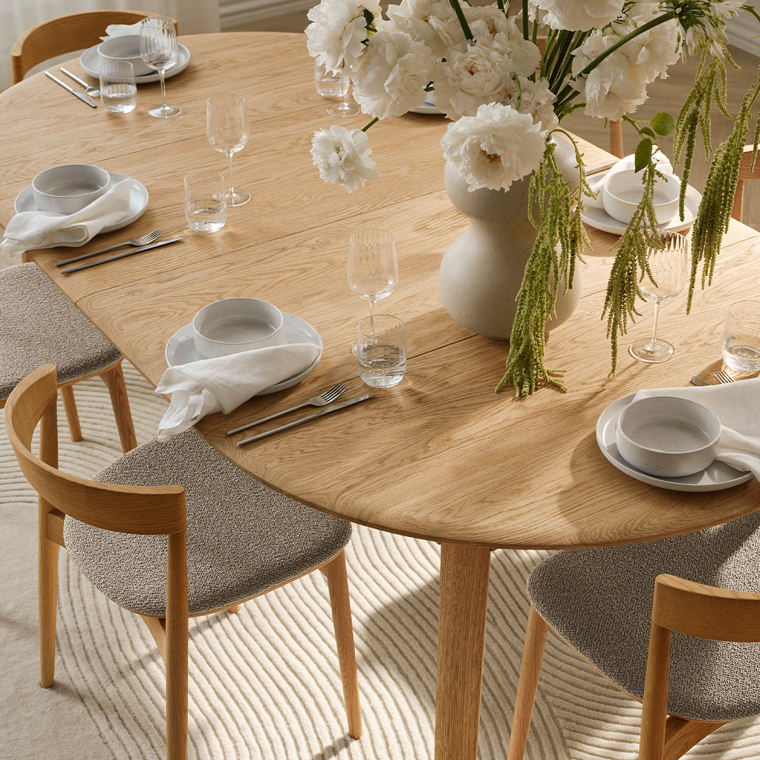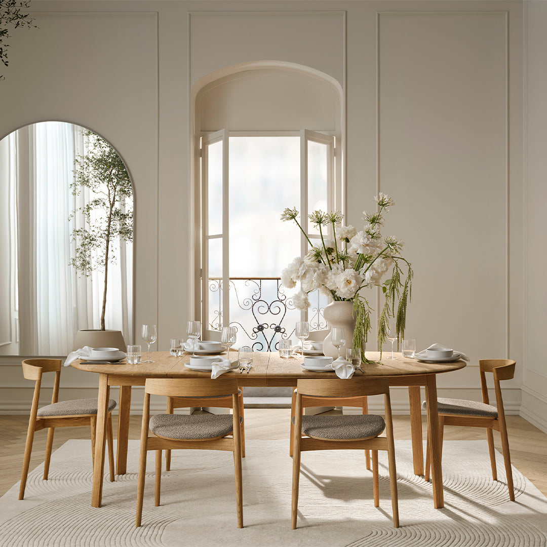 Timeless design meets solid wood craftsmanship. That’s the story behind the Palo dining table series made from solid, FSC™-certified oak with refined details. Available in both fixed and extension styles, the tabletop showcases elegantly arranged planks that harmonize beautifully with a range of interiors. The soft, continuous curves of the legs and edges add a touch of refinement, while the durable construction ensures longevity. Perfect for any dining experience, whether it’s a small, relaxed gathering with friends or a larger family dinner.