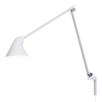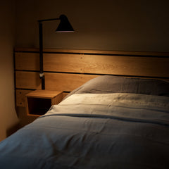 The NJP series was designed by Oki Sato, founder of nendo design studio, with the intention of producing a new interpretation of the classic anglepoise lamp—with all its familiar details—in a contemporary design with functions adapted to modern working life at home and in the office. The NJP Wall lamp’s flexible head and arms provide exceptional adjustability, which is often lacking in standard wall lights. This makes the light highly suitable for bedrooms, where adjustable beds are becoming increasingly common, and where it can be difficult to find the ideal position for a fixed wall light. It has been designed with an LED light source positioned high-up to avoid dazzling and unpleasant lighting. One refined yet practical detail is the fixture's chimney-shaped head, which reflects some of the light through the rear. This illuminates the top of the arm while allowing the heat from the light source to escape. In 2022, Louis Poulsen introduces a new version of NJP Wall with a wall box that allows the lamp to be fitted directly on the power outlet. The wall box is designed by nendo and follows the same form as the base of the table and floor lamps— with a trapezoid that narrows from the front toward the wall. Combine NJP products for a streamlined, modern look.