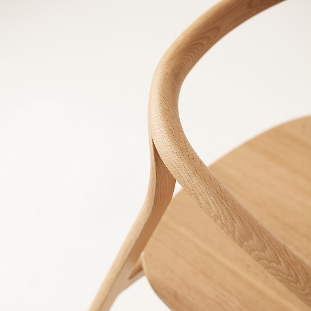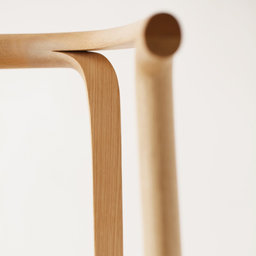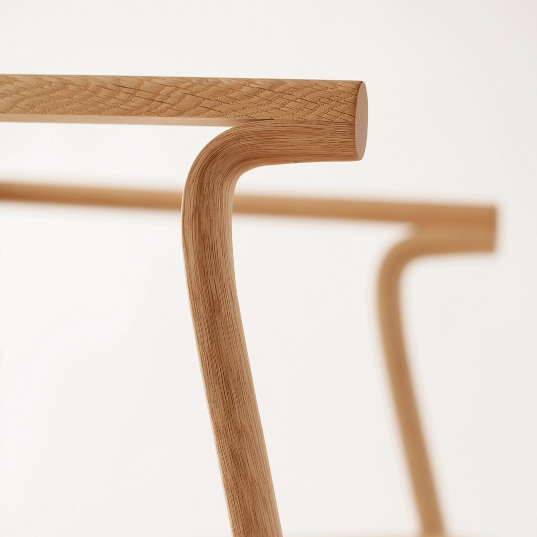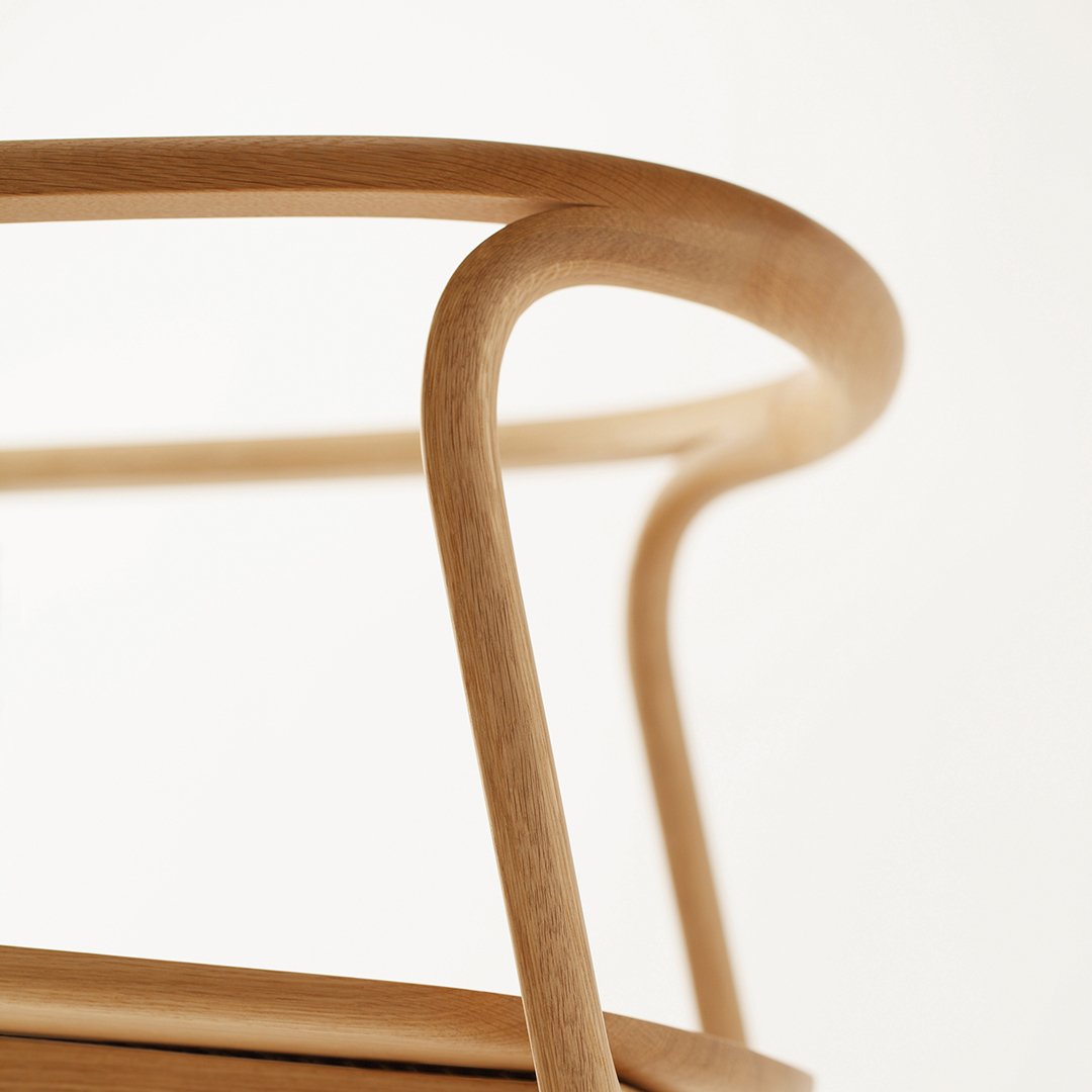The industrial design studio Nendo of Tokyo and Milan, metaphorically splintered each piece of the wood arm frame, by the bold use of bent and laminated technology. The elegantly detailed finger-joint intersection of the curved back, cross sections, peel away, while ingeniously forming pliable, graceful off shoots of pure sculpture. The result: light-footed furniture with a soft, particularly smooth surface and a true masterpiece of woodwork.
